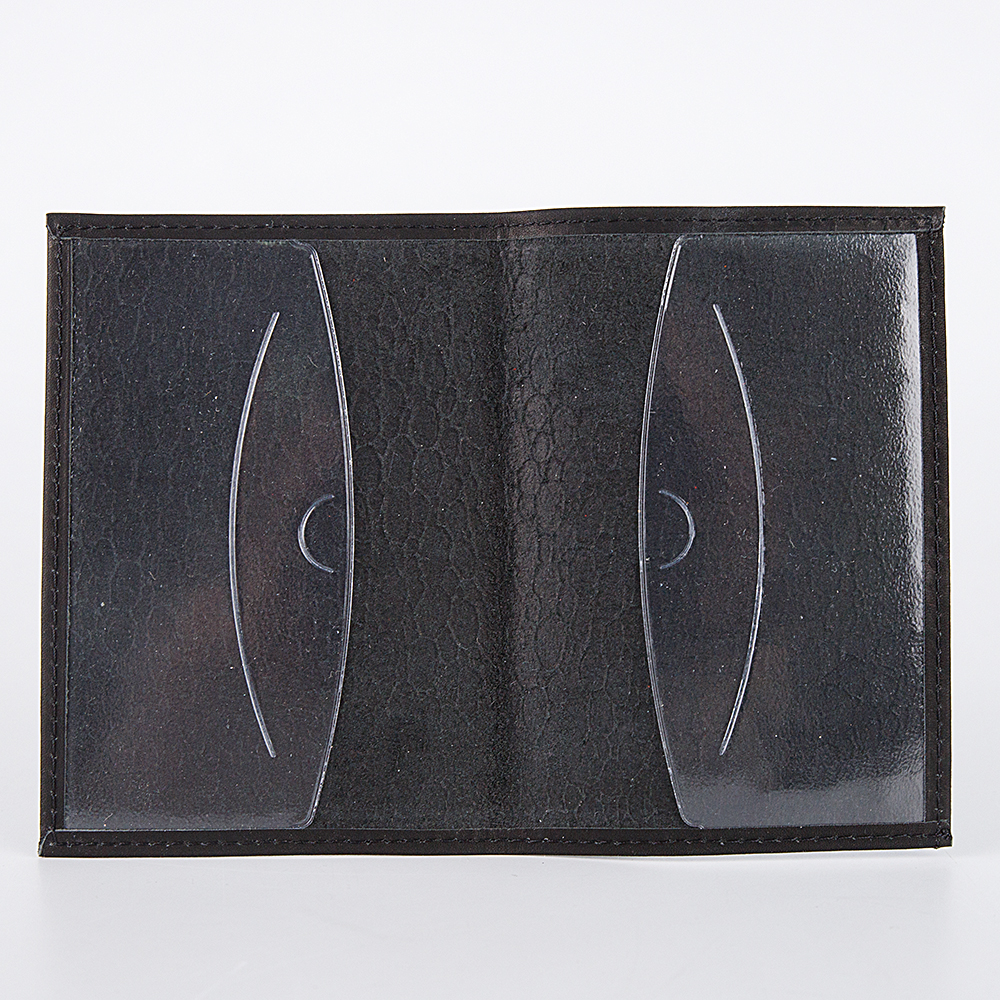 Обложка для паспорта от торговой марки Poshete из натуральной кожи черного цвета. Декорирована оригинальным тиснением с изображением волка. Внутри: прозрачные клапаны.