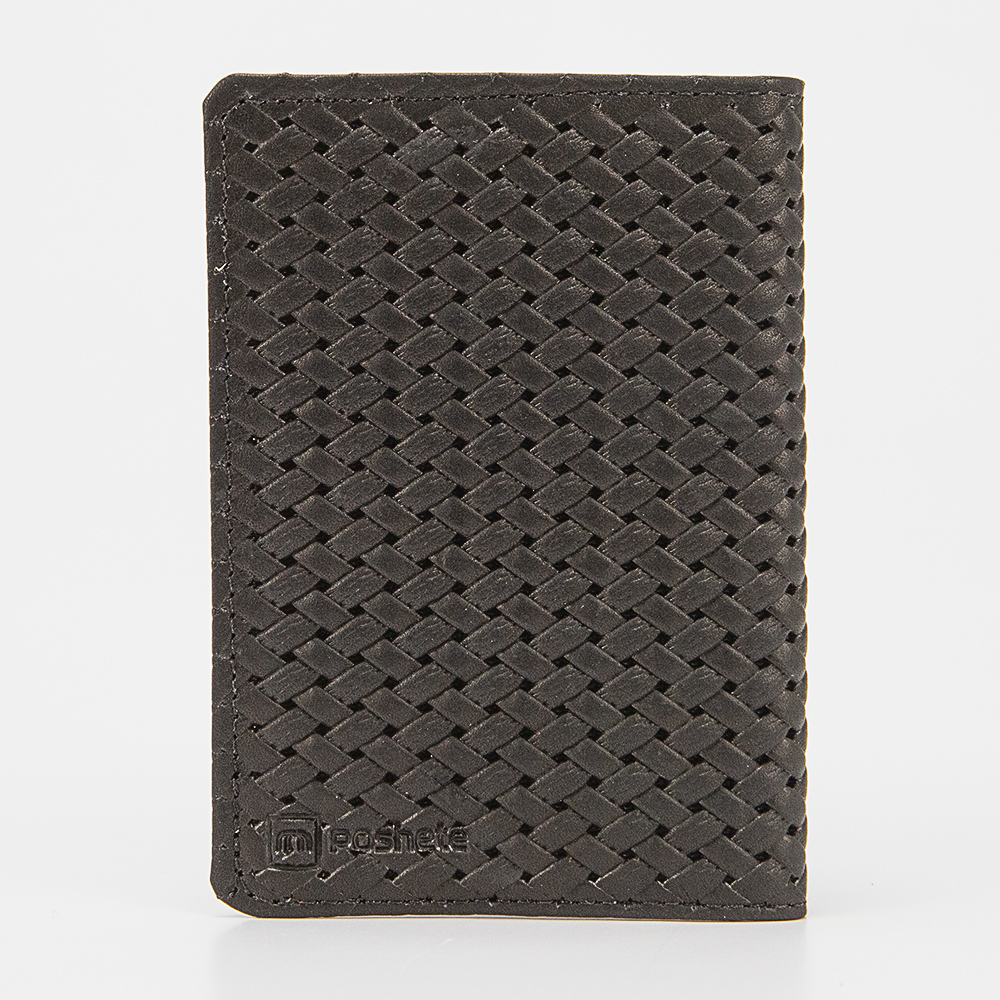 Обложка для паспорта от торговой марки Poshete из натуральной кожи черного цвета. Декорирована плетением. Внутри: прозрачные клапаны для паспорта.