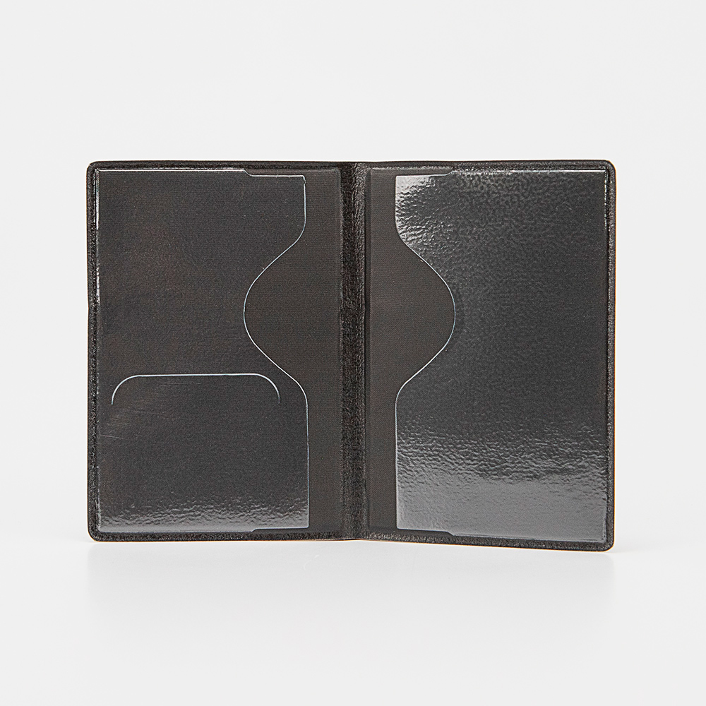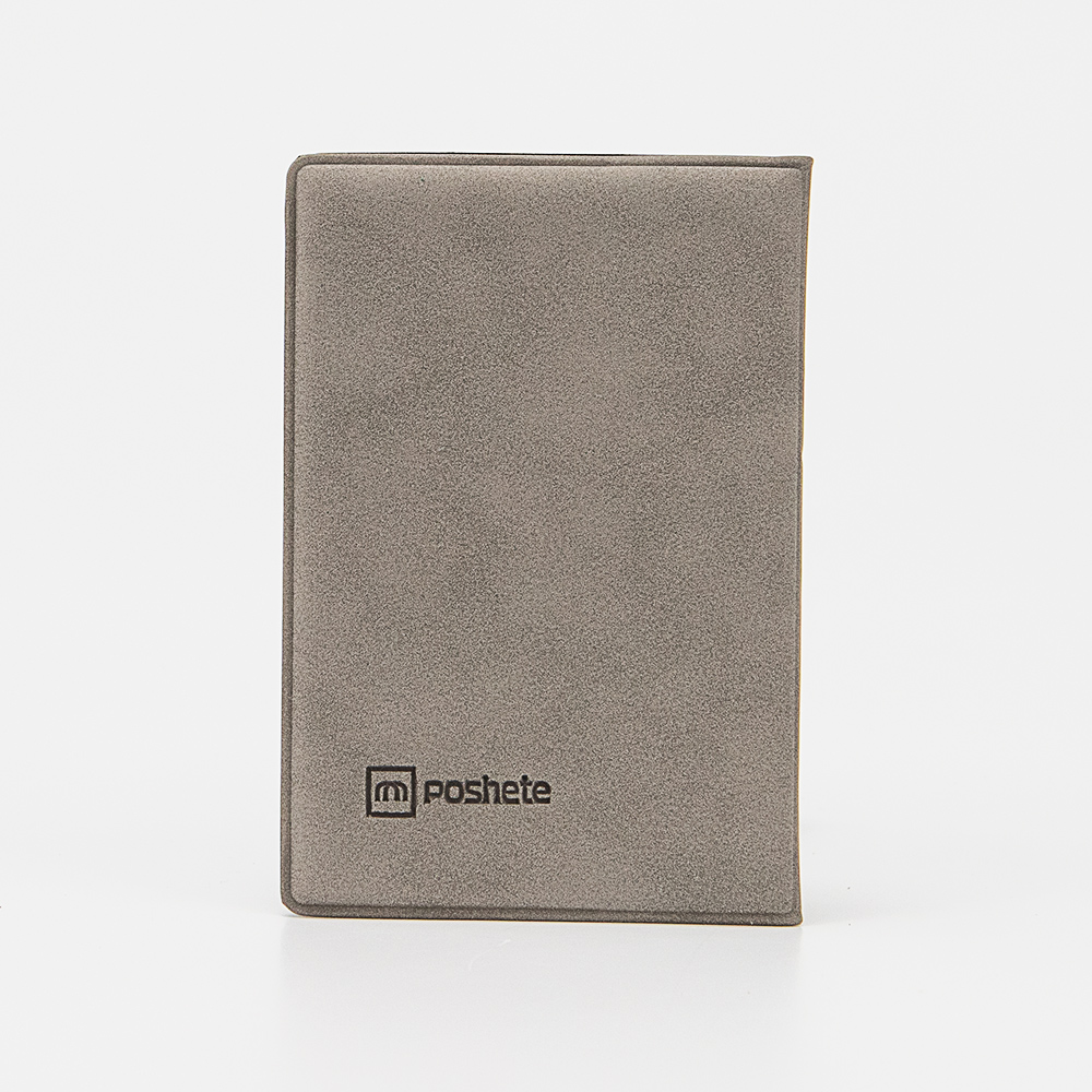 Обложка для паспорта от торговой марки Poshete из натуральной кожи серого цвета. Декорирована тиснением с Гербом России и надписью: «Паспорт». Внутри: клапаны для паспорта и карман для карт.