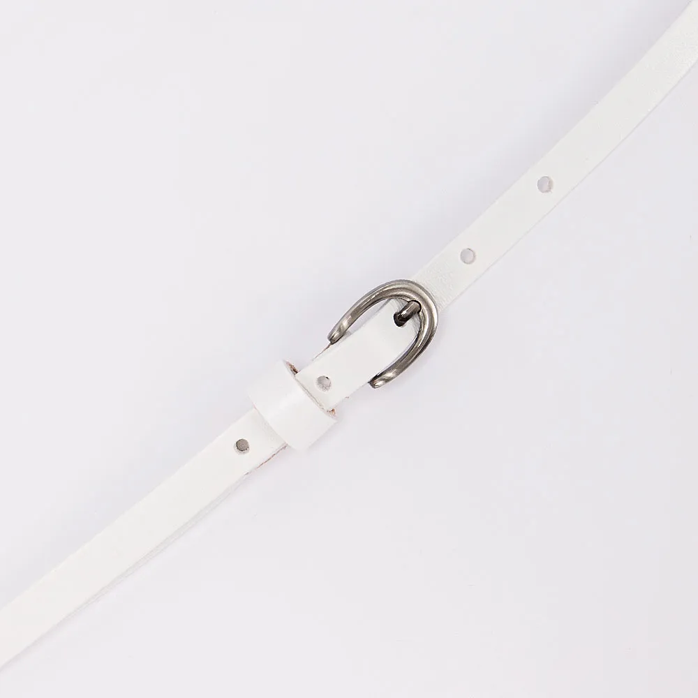 Изящный женский ремень из натуральной кожи от бренда Poshete выполнен в белом цвете. Модель длиной 111-115 см, шириной 9 мм. Имеет круглые отверстия для регулирования обхвата и фиксации пряжки. Форма металлической пряжки – овальная, с одним язычком. Имеется широкая шлевка для фиксации. Срез на конце в форме закруглённого треугольника. Элегантный ремень идеально завершит любой образ.