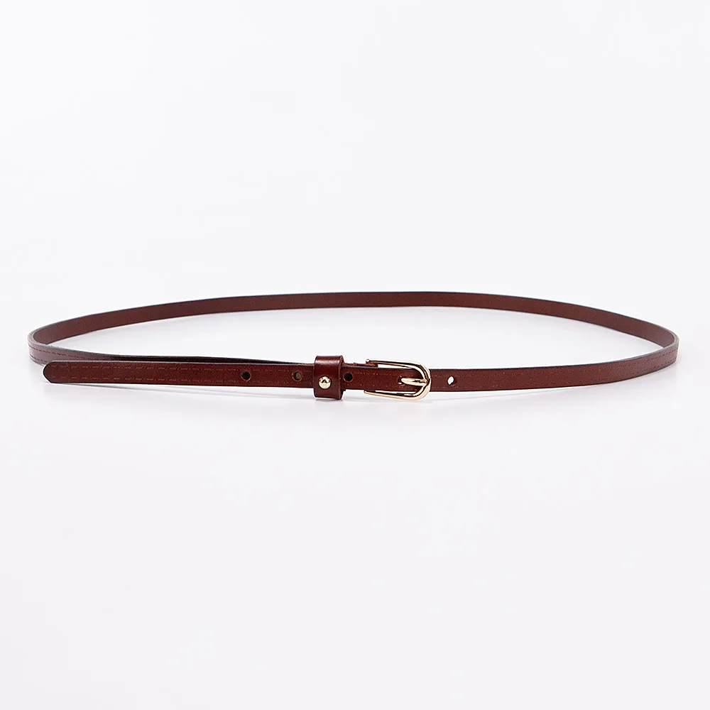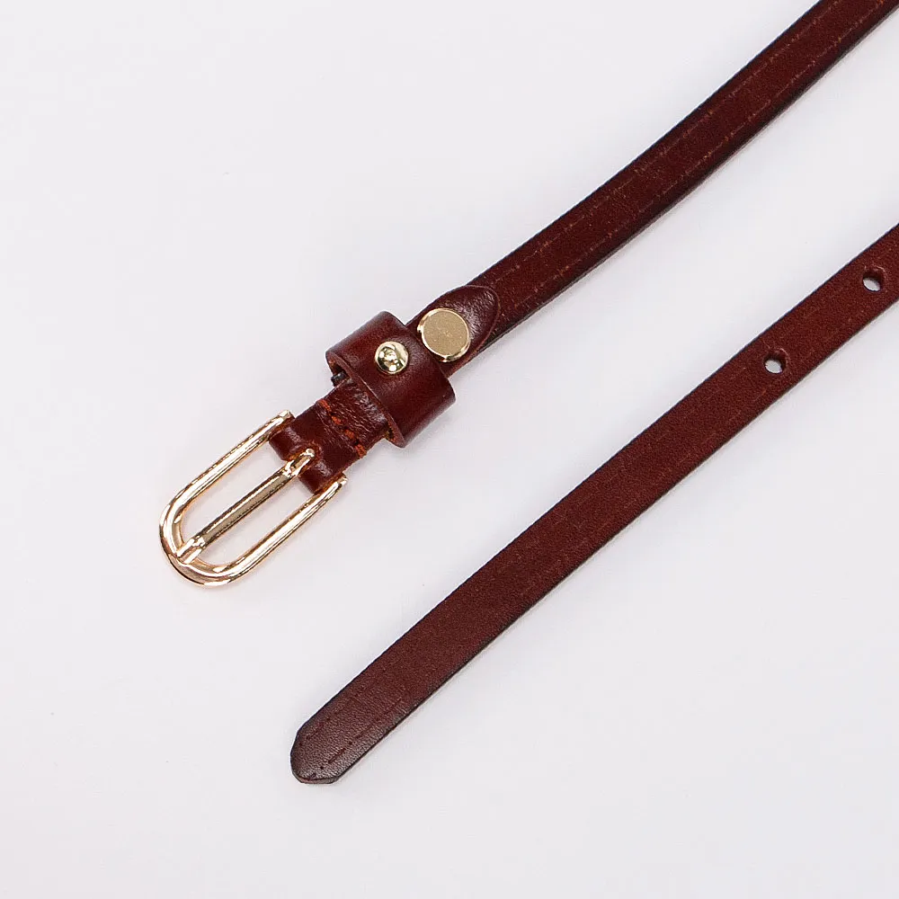 Утончённый женский ремень от бренда Poshete выполнен из натуральной кожи, с оборотной стороны замшевый, украшен перфорацией. Ремень коричневого цвета, ширина 9 мм, длина 111-115 см. Металлическая пряжка овальной формы с классическим «язычком» золотого цвета. Объём регулируется с помощью круглых отверстий, на ремне есть шлёвка для дополнительной фиксации.