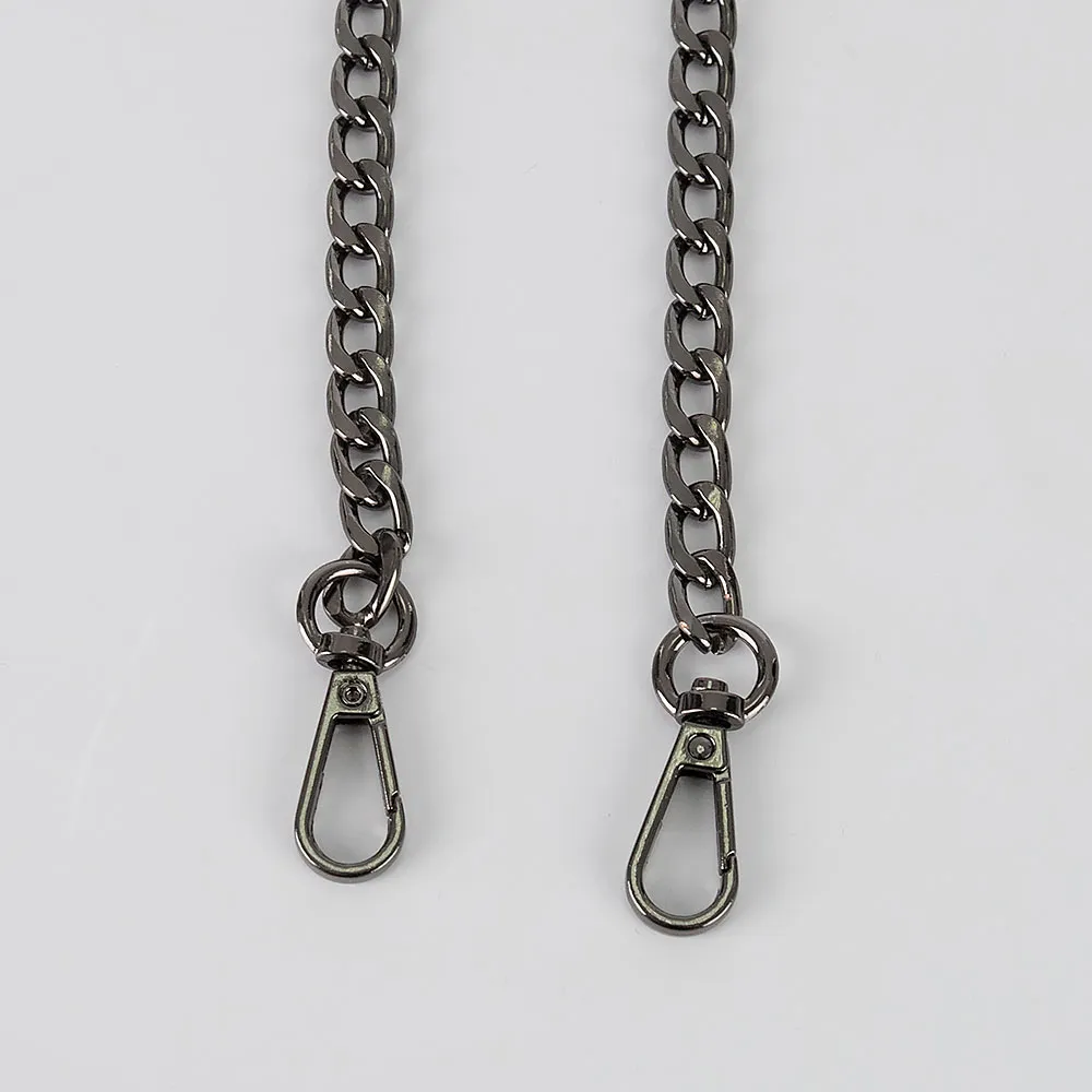 Съемный металлический ремень для сумки цвета черный никель. Модель длиной 120 см на карабинах.