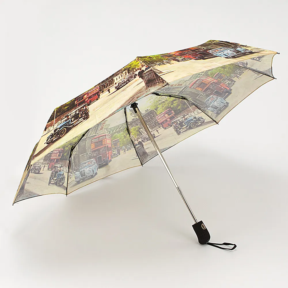 Складной зонт-автомат от торговой марки Rain Berry с материалом купола из эпонжа. Декорирован оригинальным ярким принтом с изображением городского пейзажа. Модель автомат имеет 3 сложения, 8 спиц, диаметр купола - 99 см, радиус – 56 см. Фото являются ознакомительными. Товар представлен в ассортименте. Просим уточнять расцветку в магазинах Вашего города или в комментариях при заказе на сайте. Подходящий вариант подбирается, исходя из наличия.