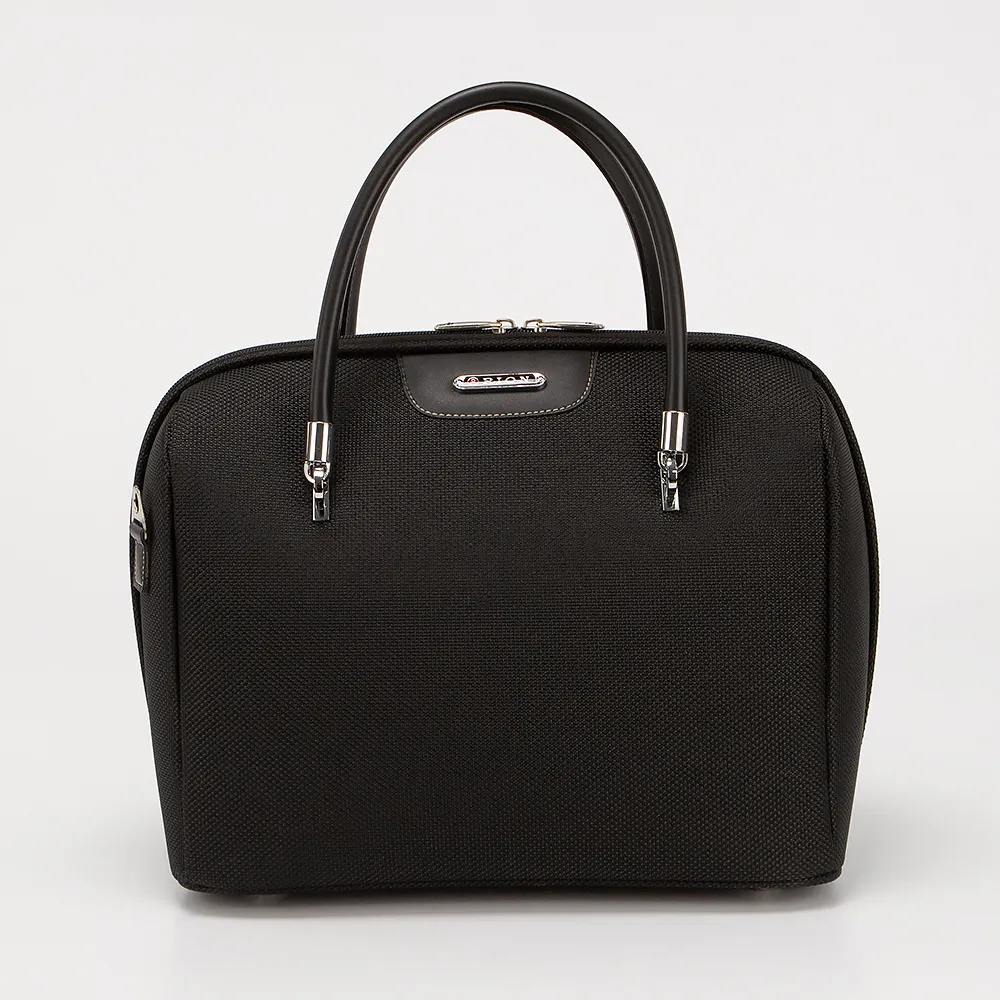 Бьюти-кейс от торговой марки Rion из текстильного материала коричневого цвета с принтом в клетку. Модель с двумя удлиненными ручками и лямкой для крепления на выдвижную ручку чемодана. Закрывается молнией по трем сторонам со встречными бегунками.