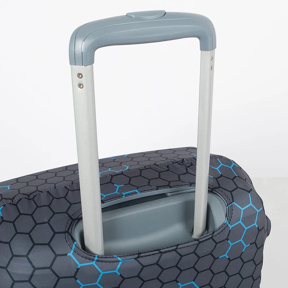 Чехол для чемодана от торговой марки Grott выполнен из прочного эластичного материала. Модель размером M подходит для чемоданов с диагональю от 22 до 26 дюймов. Застегивается снизу на молнию, имеет отверстия для переносных ручек и выдвижной ручки чемодана. Дорожный аксессуар защитит багаж от загрязнений и повреждений, а оригинальный принт с сотами поможет опознать чемодан на багажной ленте.