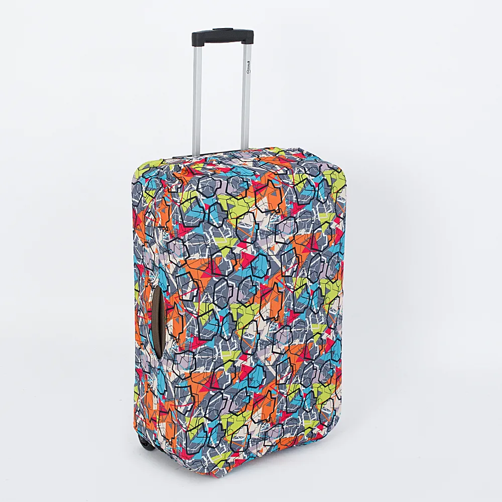 Практичный износостойкий чехол для чемодана от торговой марки Grott выполнен из прочного текстиля. Дорожный аксессуар поможет предохранить багаж от загрязнений, вскрытий и мелких повреждений. Чехол эластичный, подходит для чемоданов с диагональю от 22 до 26 дюймов. Застегивается снизу на липучку и дополнен эластичным ремешком на застежке фастекс; имеет отверстия слева и справа для переносных ручек и сверху для выдвижной ручки чемодана. Оригинальный ромбовидный принт поможет опознать чемодан на багажной ленте.