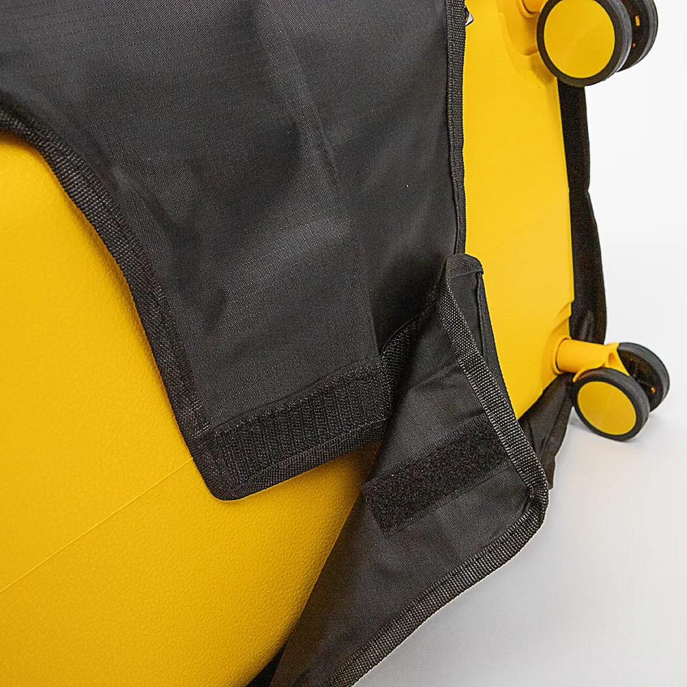Чехол для чемодана от торговой марки Grott из текстильного материала. Декорирован принтом с изображением самолета. Модель для чемоданов с диагональю от 26 до 28 дюймов; снизу застегивается на липучку, имеет прорези для ручек багажа по бокам и сверху. Дорожный аксессуар поможет предохранить багаж от загрязнений, вскрытий и мелких повреждений. Размер: L.