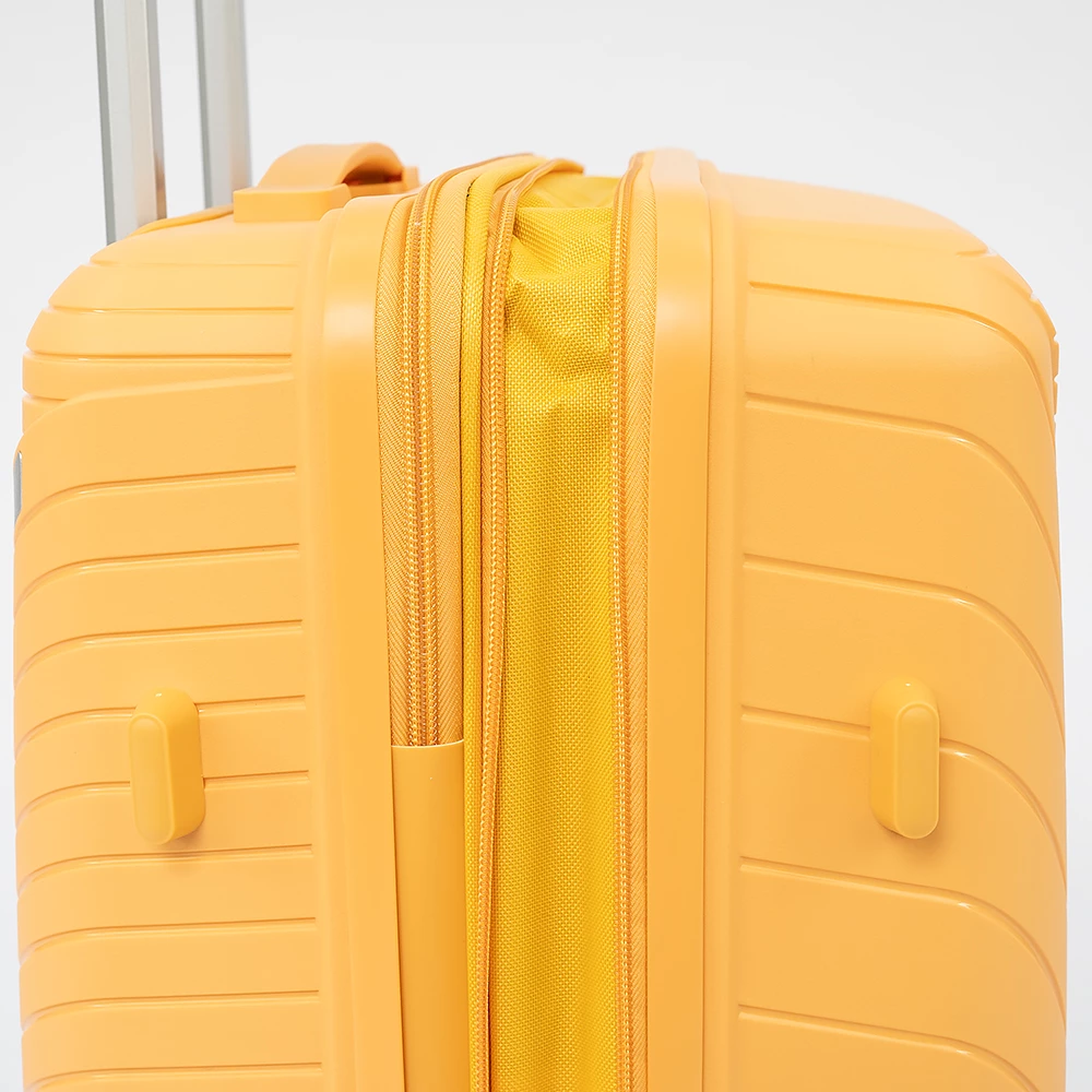 Чемодан-спиннер от Valigetti — это модель, выполненная из ударопрочного термостойкого полипропилена. Она имеет рельефную антивандальную поверхность и выполнена в желтом цвете.