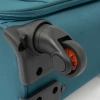 Суперлегкий чемодан от бренда Francesco Molinary, изготовленный из практичного полиэстера с водоотталкивающей пропиткой, с ярким бирюзовым цветом с оранжевыми элементами.
