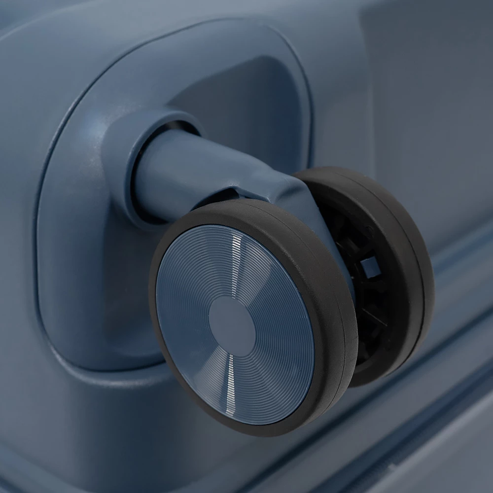 Чемодан-спиннер от бренда Valigetti из ударопрочного термостойкого полипропилена с рельефной антивандальной поверхностью синего цвета. Модель на четырех сдвоенных колесах, с выдвижной ручкой, ручками-переносками сверху и сбоку, пластиковыми ножками сбоку для защиты от износа. Закрывается молнией №8 «антивор», имеется кодовый замок, утопленный в корпус. Внутри: фирменная подкладка, в одной части — клапан-разделитель на молнии, карман-сетка на молнии, в другой части — перекрестные ремни для фиксации багажа. На верхних боковых ножках предусмотрены крючки для подвешивания пакетов.