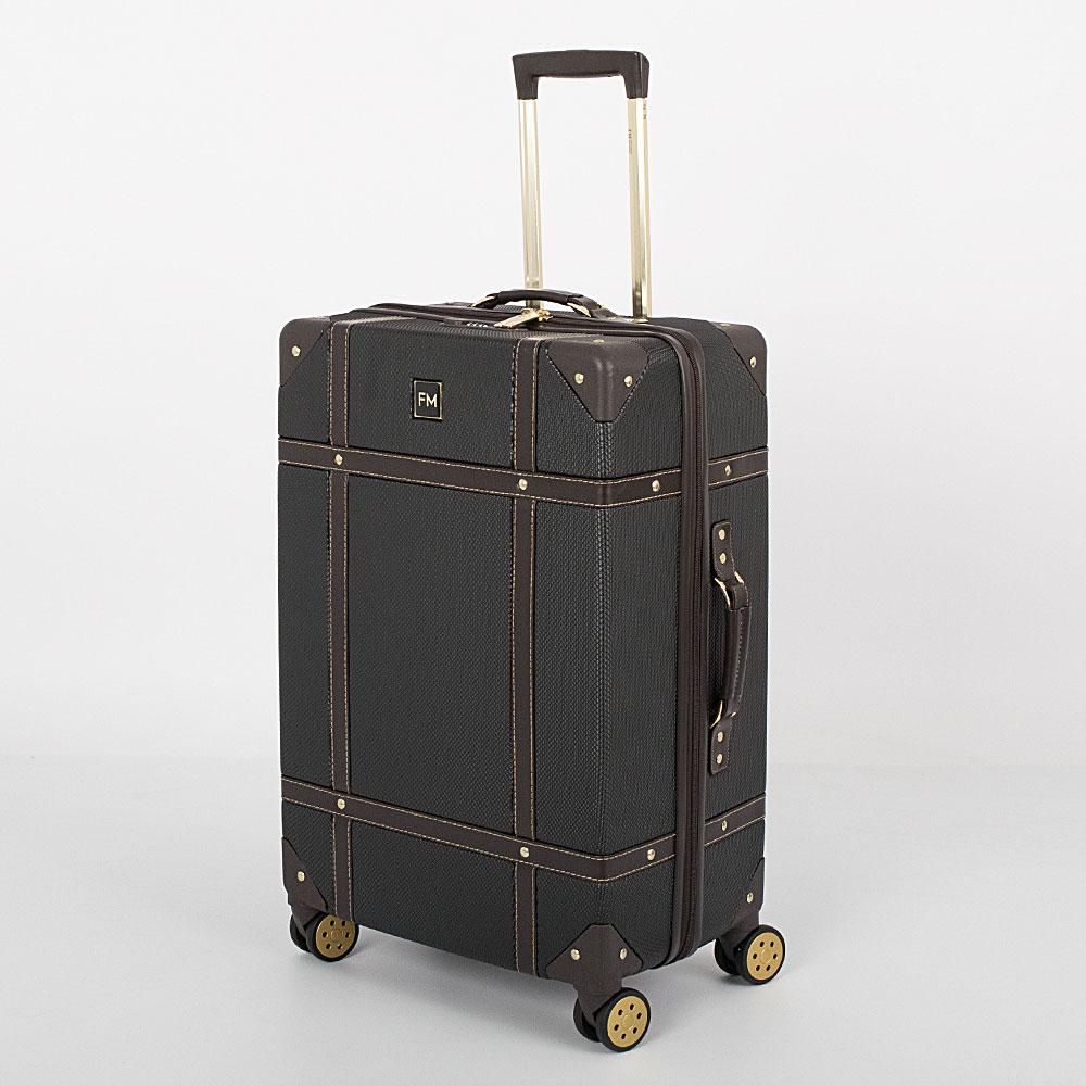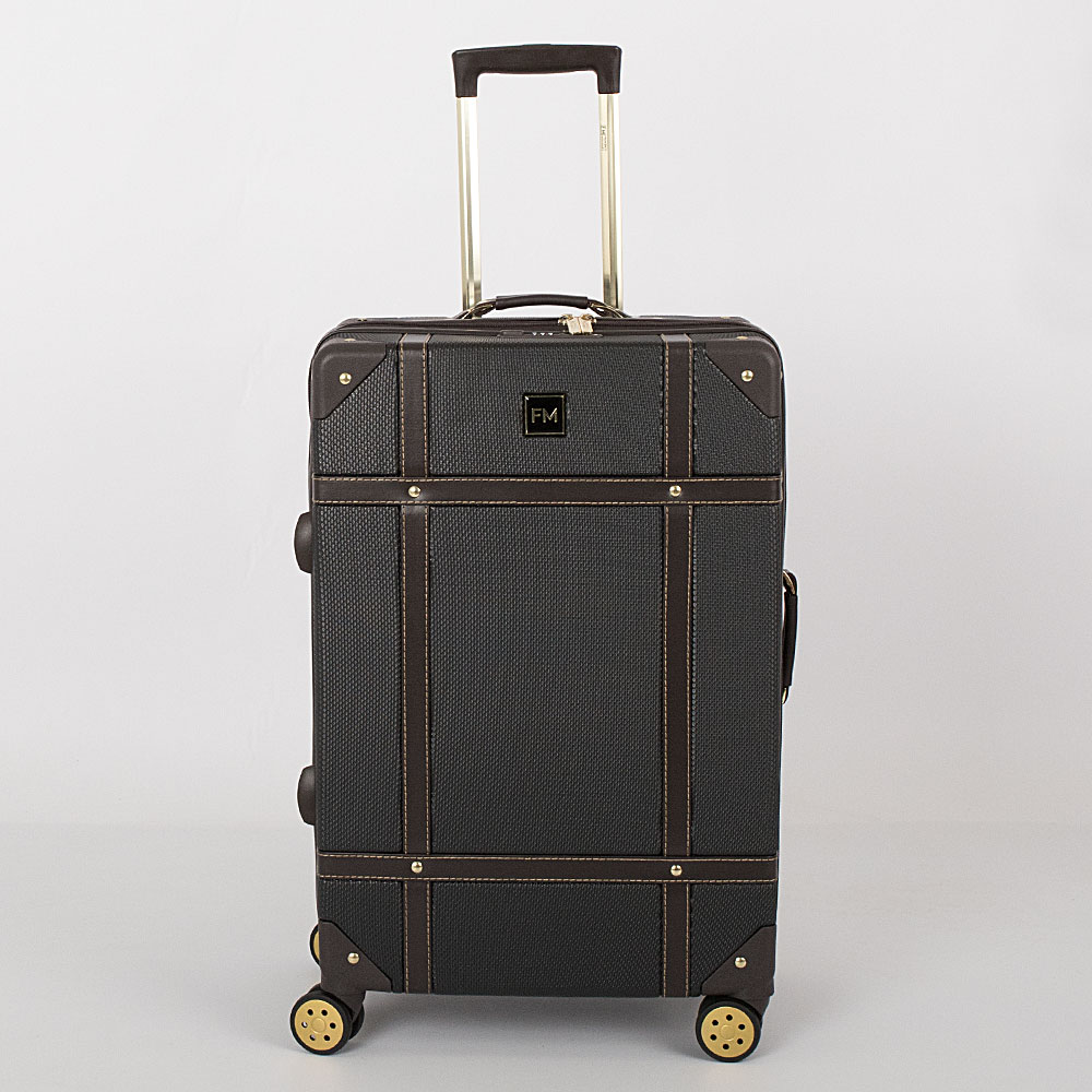 Чемодан-спиннер от торговой марки Francesco Molinary выполнен из ударопрочного ABS-пластика синего цвета. Модель на четырех сдвоенных пластиковых колесах, оснащена выдвижной металлической ручкой с кнопкой, ручками из искусственной кожи сверху и сбоку, пластиковыми ножками сбоку, утопленным в корпус кодовым замком TSA. Двойная антивандальная молния делит чемодан на две равные части, в одной из которых – клапан на молнии с внешним карманом-сеткой на молнии, в другой – перекрестные ремни для фиксации багажа. Углы чемодана укреплены пластиковыми накладками. Модель декорирована фурнитурой золотистого цвета, вставками из искусственной кожи и клепками, придающими эффект брутальности.
