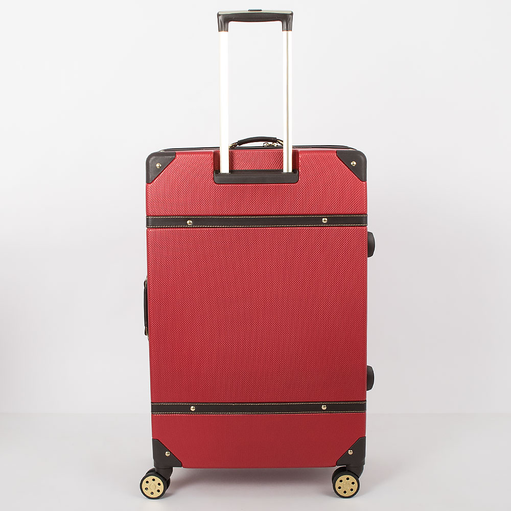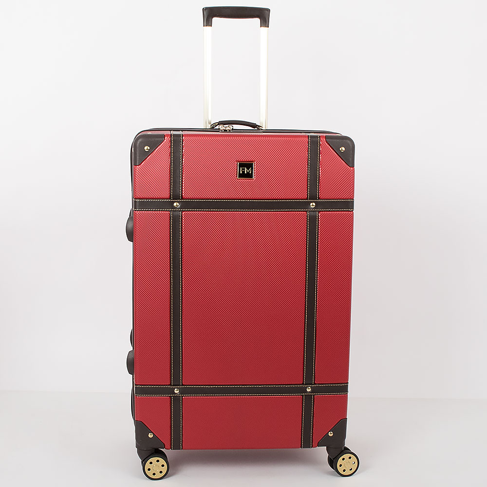 Чемодан-спиннер от торговой марки Francesco Molinary выполнен из ударопрочного ABS-пластика синего цвета. Модель на четырех сдвоенных пластиковых колесах, оснащена выдвижной металлической ручкой с кнопкой, ручками из искусственной кожи сверху и сбоку, пластиковыми ножками сбоку, утопленным в корпус кодовым замком TSA. Двойная антивандальная молния делит чемодан на две равные части, в одной из которых – клапан на молнии с внешним карманом-сеткой на молнии, в другой – перекрестные ремни для фиксации багажа. Углы чемодана укреплены пластиковыми накладками. Модель декорирована фурнитурой золотистого цвета, вставками из искусственной кожи и клепками, придающими эффект брутальности.