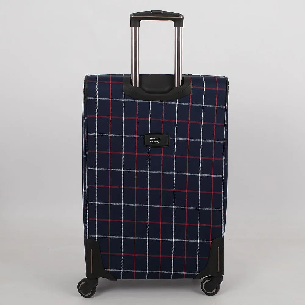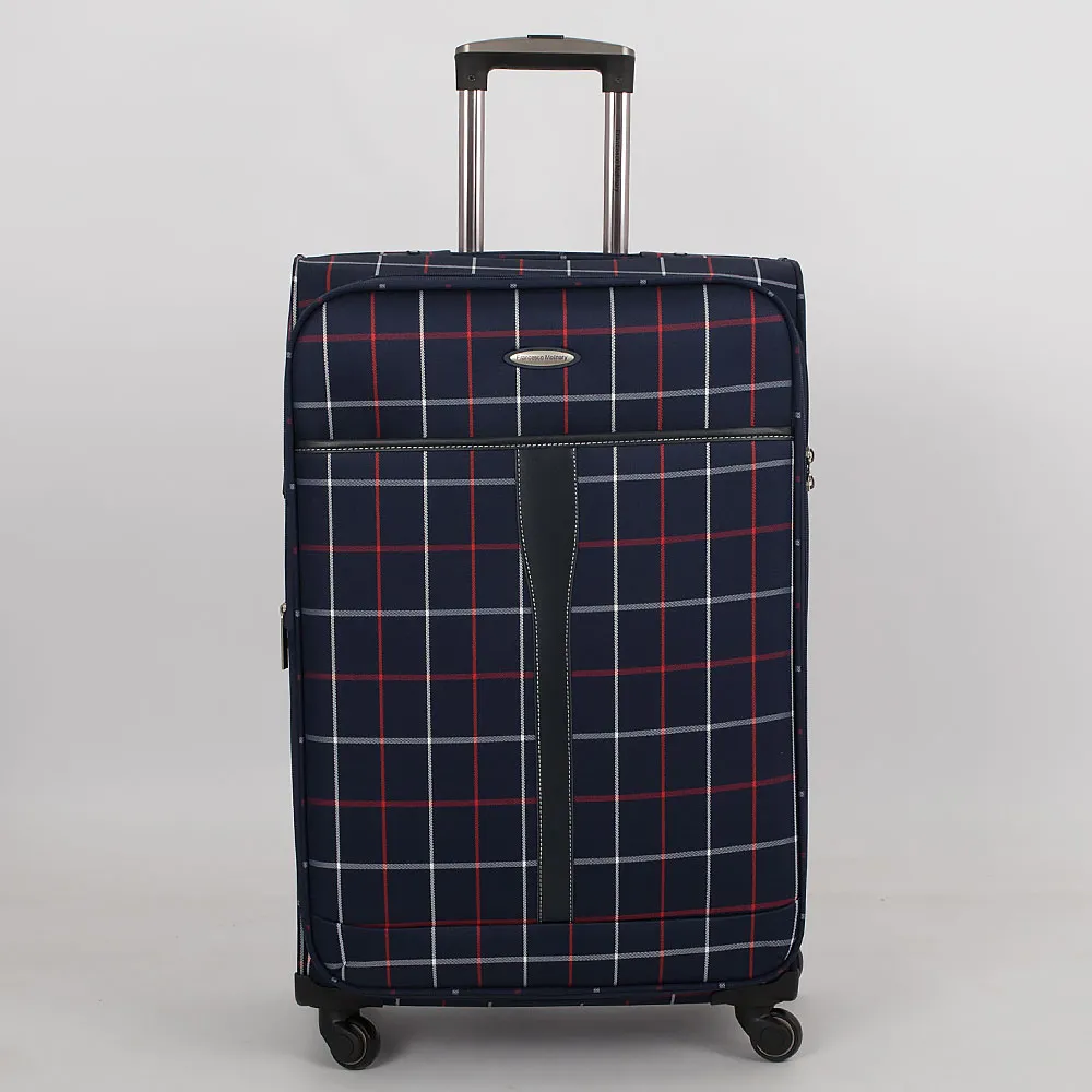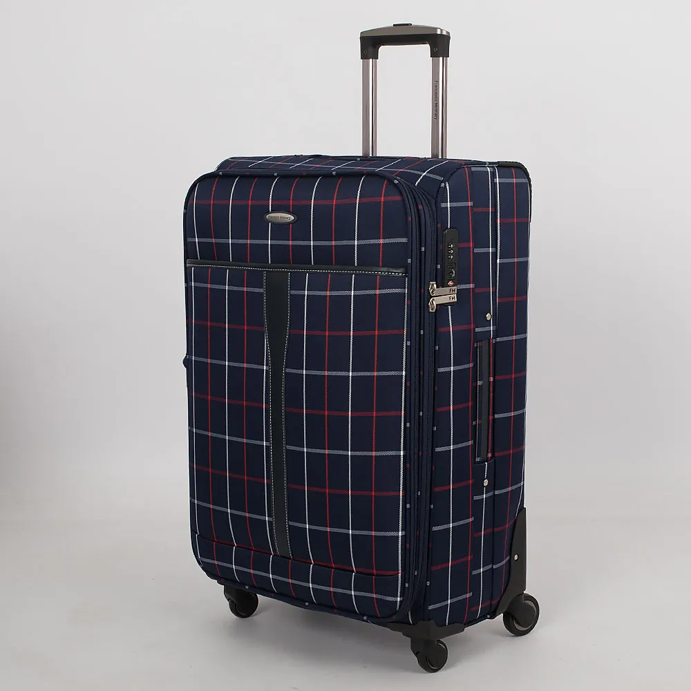 Стильный и практичный чемодан-спиннер от бренда Francesco Molinary выполнен из плотного текстильного материала синего цвета в клетку с вставками из искусственной кожи. Модель на четырех пластиковых колесах с поворотом на 360 градусов, оснащена выдвижной П-образной ручкой, двумя переносными ручками сверху и сбоку, ножками сбоку, кодовым замком, выдвижной багажной биркой. Вместительное отделение на молнии; внутри сетчатый карман на молнии с одной стороны и фиксирующие ремни для багажа с другой. Объём основного отделения регулируется с помощью раздвижки на молнии. На передней стороне - накладной карман на молнии.