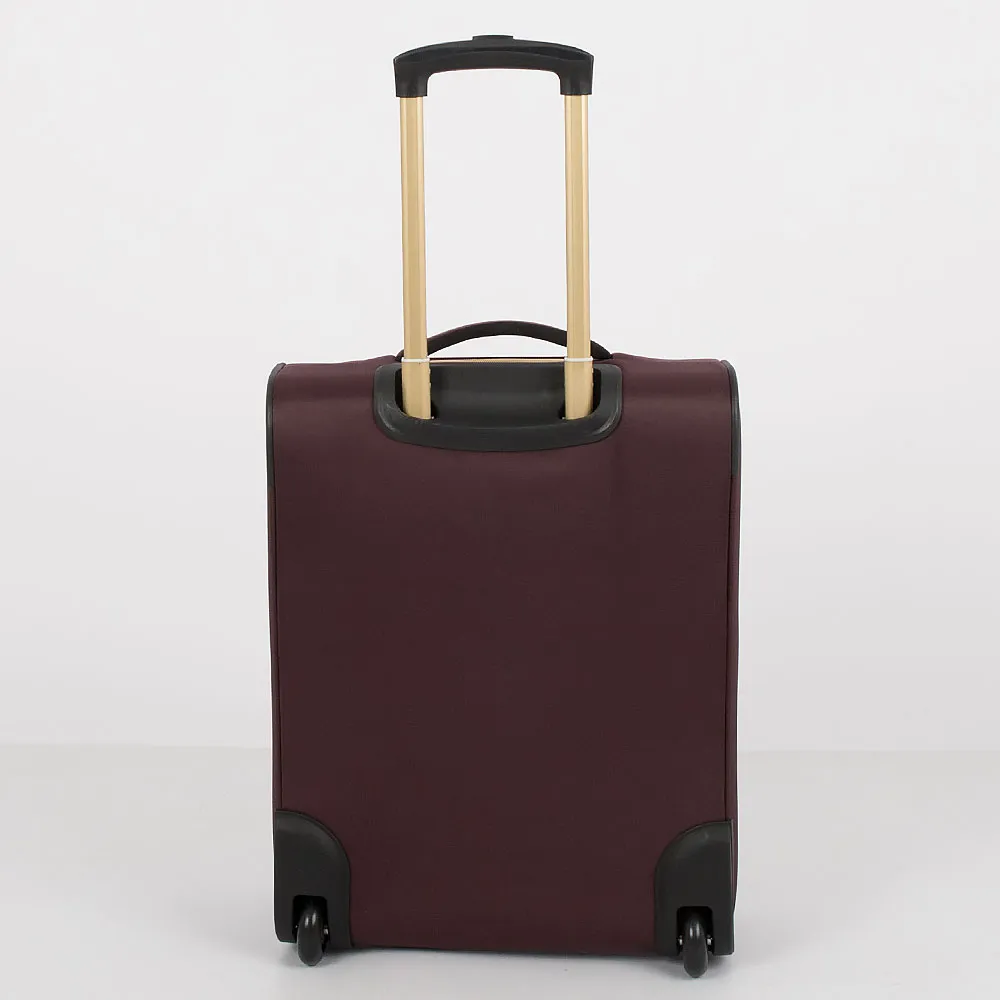 Чемодан-спиннер от торговой марки Grott из прочного текстильного материала зеленого цвета. Модель на четырех пластиковых колесах, с выдвижной ручкой с железными трубками, ручками-переносками сверху и сбоку. Закрывается молнией золотистого цвета; имеется замок TSA, утопленный в корпус. Внутри: фирменная подкладка плотностью 210 Ден; на крышке – два кармана на молнии, в том числе карман-сетка; в глубоком отделении – ремни для фиксации багажа. На лицевой стороне – карман на молнии; вставка, декорированная мягкой стежкой. Верхние углы креплены пластиковыми накладками для защиты от износа. Имеется раздвижка на молнии для увеличения объема.
