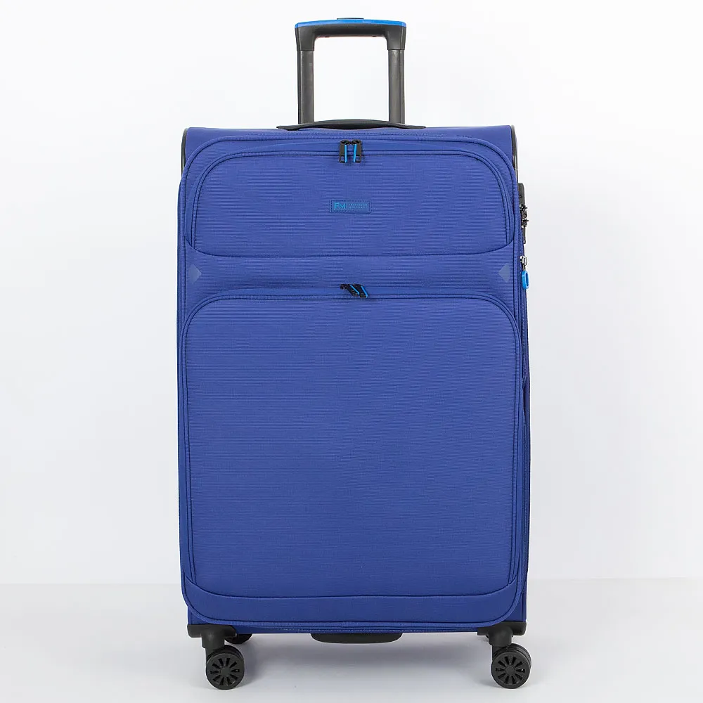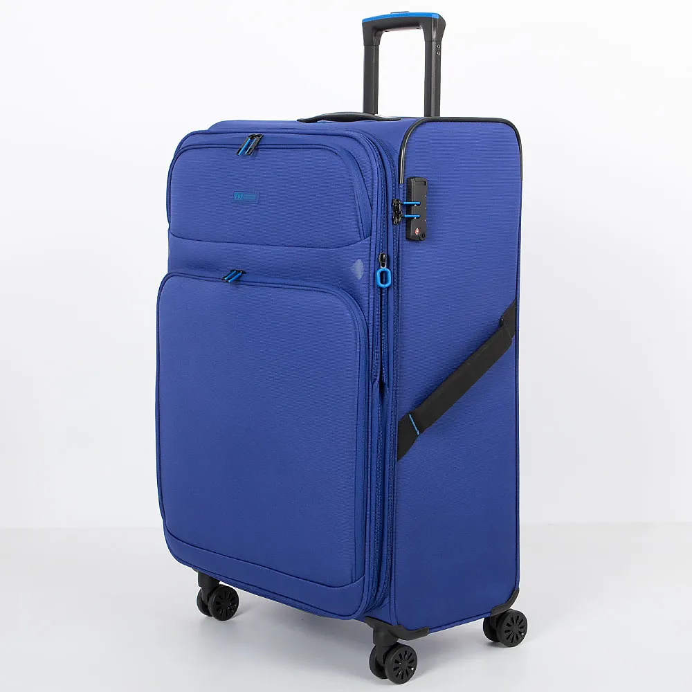 Чемодан-спиннер от торговой марки Francesco Molinary из практичного полиэстера плотностью 900 Ден с влагостойкой пропиткой в черном цвете. Модель на четырех сдвоенных колесах, с выдвижной ручкой с железными трубками, прорезиненной ручкой-переноской сверху и ручкой сбоку, держателем на дне. Закрывается двойной антивандальной молнией; имеется кодовый замок TSA и раздвижка на молнии для увеличения объема. Верхние углы укреплены прорезиненными накладками. Внутри: уплотненная фирменная подкладка; на крышке – карман-сетка на молнии, в глубоком отделении – фиксирующие ремни для багажа. На лицевой стороне – два кармана на молнии.