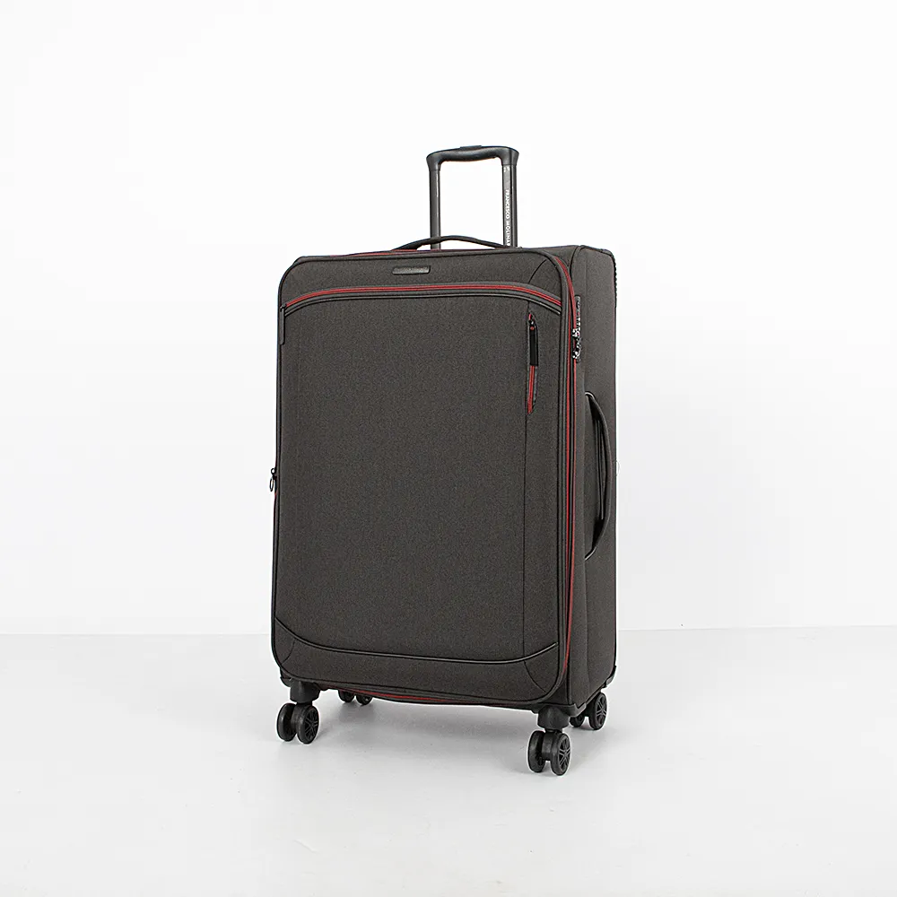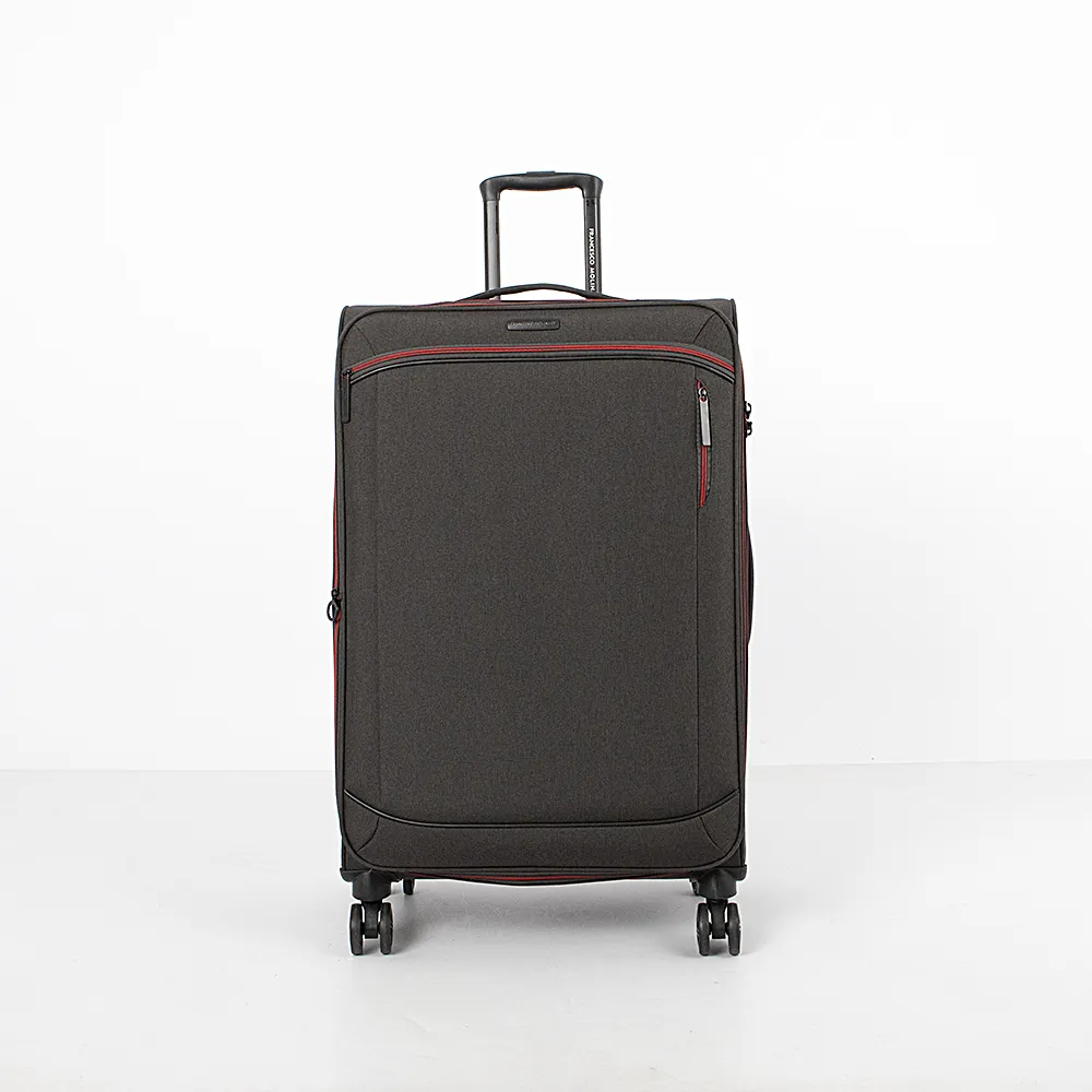 Чемодан-спиннер от торговой марки Francesco Molinary из прочного практичного текстильного материала черного цвета. Модель на четырех сдвоенных колесах, с выдвижной ручкой с кнопкой, ручками-переносками сверху и сбоку. Закрывается крупной молнией, имеется кодовый замок TSA, утопленный в корпус. Внутри: фирменная подкладка, в глубоком отделении - фиксирующие ремни для багажа, на крышке - два кармана на молнии, в том числе карман-сетка. Верхние углы защищены прорезиненными накладками. Имеется раздвижка на молнии для увеличения объема. На лицевой стороне - два кармана на молнии.