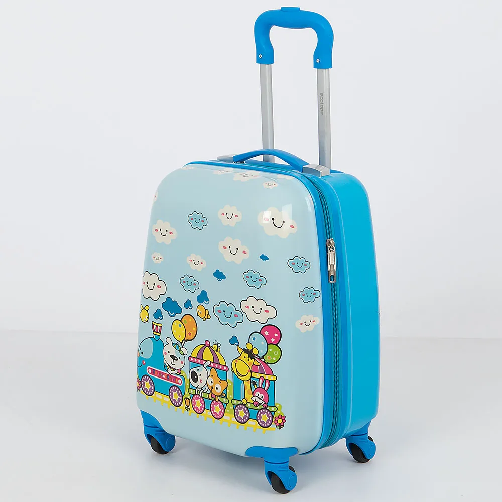 Детский чемодан от торговой марки Ecotope из ударопрочного ABS-пластика и поликарбоната. Декорирован принтом с изображением зайчика. Модель на четырех пластиковых колесах, с выдвижной ручкой и ручкой-переноской сверху. Закрывается молнией. Внутри: текстильная подкладка; в одной части – клапан-разделитель, в другой – перекрестные ремни для фиксации багажа.