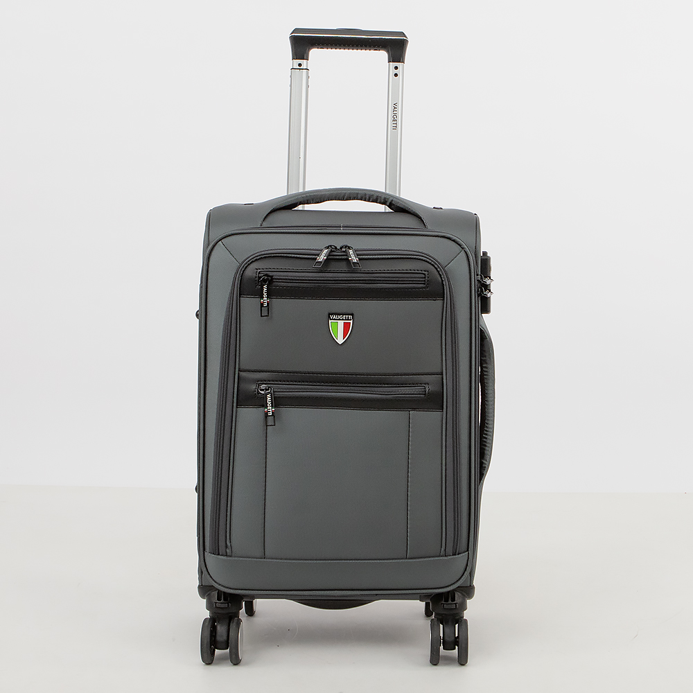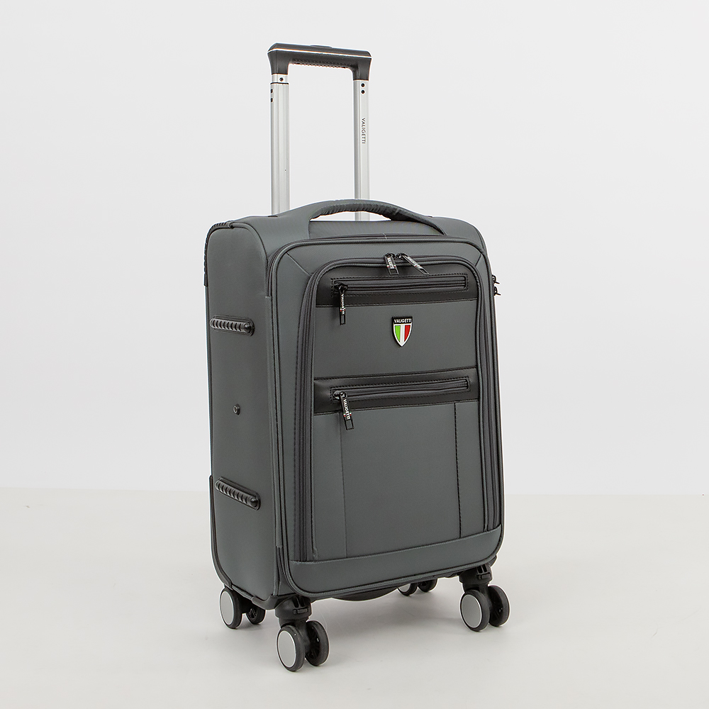 Чемодан-спиннер от торговой марки Valigetti из прочного текстильного материала синего цвета. Декорирован деталями в цвете итальянского флага. Модель на четырех сдвоенных прорезиненных съемных колесах, с выдвижной ручкой, двумя ручками, укрепленными хольнитенами, ручкой-держателем на дне, ножками-опорами сбоку. Верхние углы защищены прорезиненными накладками, нижняя часть – пластиковыми накладками. Закрывается молнией; имеется кодовый замок с выдвижным адресным окном. Внутри: фирменная подкладка с поролоновой вставкой. В глубоком отделении – фиксирующие ремни для багажа; на крышке – два кармана на молнии. На лицевой стороне – вместительный карман-отделение, два кармана на молнии. На спинке – выдвижное адресное окошко. Имеется раздвижка на молнии для увеличения объема.