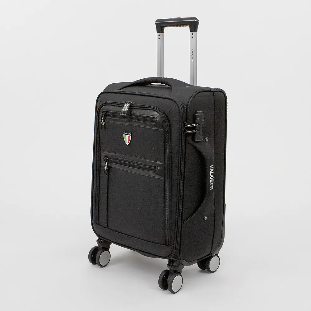 Чемодан-спиннер от торговой марки Valigetti из прочного текстильного материала синего цвета. Декорирован деталями в цвете итальянского флага. Модель на четырех сдвоенных прорезиненных съемных колесах, с выдвижной ручкой, двумя ручками, укрепленными хольнитенами, ручкой-держателем на дне, ножками-опорами сбоку. Верхние углы защищены прорезиненными накладками, нижняя часть – пластиковыми накладками. Закрывается молнией; имеется кодовый замок с выдвижным адресным окном. Внутри: фирменная подкладка с поролоновой вставкой. В глубоком отделении – фиксирующие ремни для багажа; на крышке – два кармана на молнии. На лицевой стороне – вместительный карман-отделение, два кармана на молнии. На спинке – выдвижное адресное окошко. Имеется раздвижка на молнии для увеличения объема.