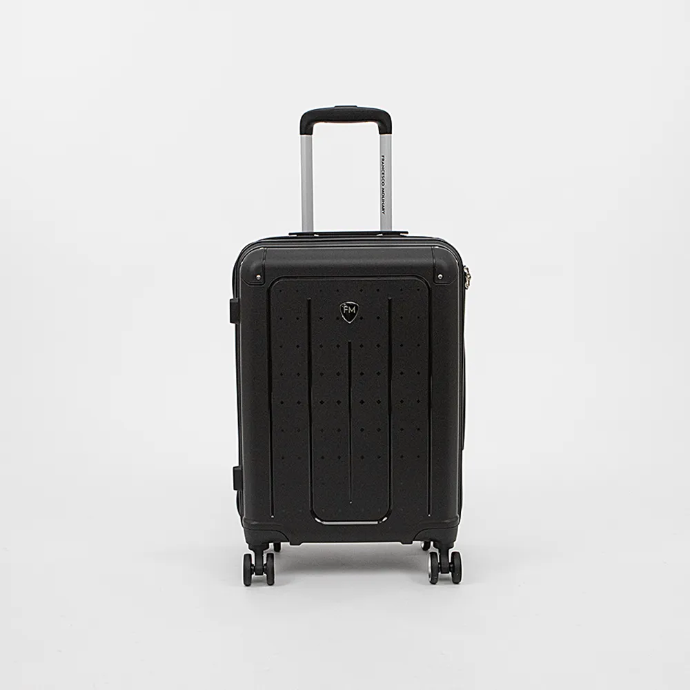 Маневренный чемодан-спиннер от торговой марки Francesco Molinary выполнен из ударопрочного полипропилена в желтом цвете. Модель на четырех сдвоенных пластиковых колесах, с выдвижной телескопической ручкой, прорезиненной ручкой-переноской сверху и сбоку; пластиковыми ножками сбоку. Отделение на молнии с двумя встречными бегунками с отверстиями для навесного замка, не входящего в комплект; имеется кодовый замок, утопленный в корпус. Закрывается на двойную антивандальную молнию «антивор». Внутри: фирменная подкладка, в одной части – клапан-разделитель и карман-сетка на молнии, в другой – перекрестные фиксирующие ремни для багажа; посередине имеется карман на молнии. В верхней части чемодан укреплен пластиковыми угловыми накладками. Имеется раздвижка на молнии для увеличения объема.