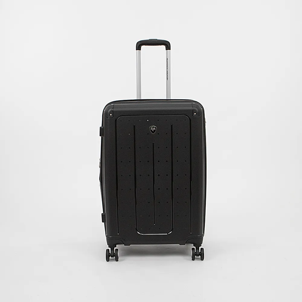 Маневренный чемодан-спиннер от торговой марки Francesco Molinary выполнен из ударопрочного полипропилена в желтом цвете. Модель на четырех сдвоенных пластиковых колесах, с выдвижной телескопической ручкой, прорезиненной ручкой-переноской сверху и сбоку; пластиковыми ножками сбоку. Отделение на молнии с двумя встречными бегунками с отверстиями для навесного замка, не входящего в комплект; имеется кодовый замок, утопленный в корпус. Закрывается на двойную антивандальную молнию «антивор». Внутри: фирменная подкладка, в одной части – клапан-разделитель и карман-сетка на молнии, в другой – перекрестные фиксирующие ремни для багажа; посередине имеется карман на молнии. В верхней части чемодан укреплен пластиковыми угловыми накладками. Имеется раздвижка на молнии для увеличения объема.
