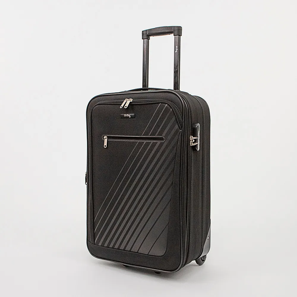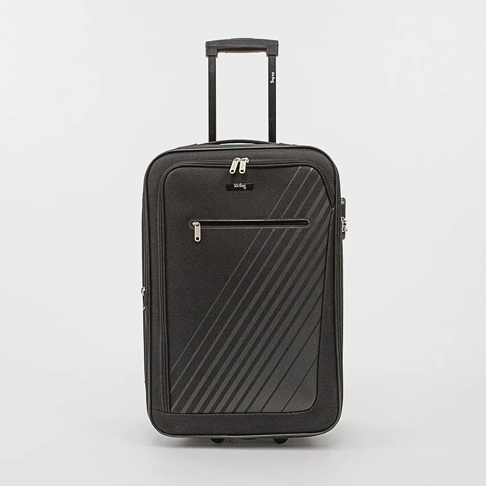 Чемодан от торговой марки Mr.Bag из практичного текстильного материала коричневого цвета. Модель апрайт на двух пластиковых колесах, с выдвижной ручкой, ручками-переносками сверху и сбоку, держателем на дне, пластиковыми ножками на дне и сбоку. Закрывается молнией с двумя встречными бегунками и отверстиями для навесного замка, не входящего в комплект; имеется накладной кодовый замок. Внутри: фирменная подкладка; в глубоком отделении – фиксирующие багажные ремни, на крышке – карман-сетка на молнии. На лицевой стороне – два кармана на молнии. На задней стороне – адресное окошко.