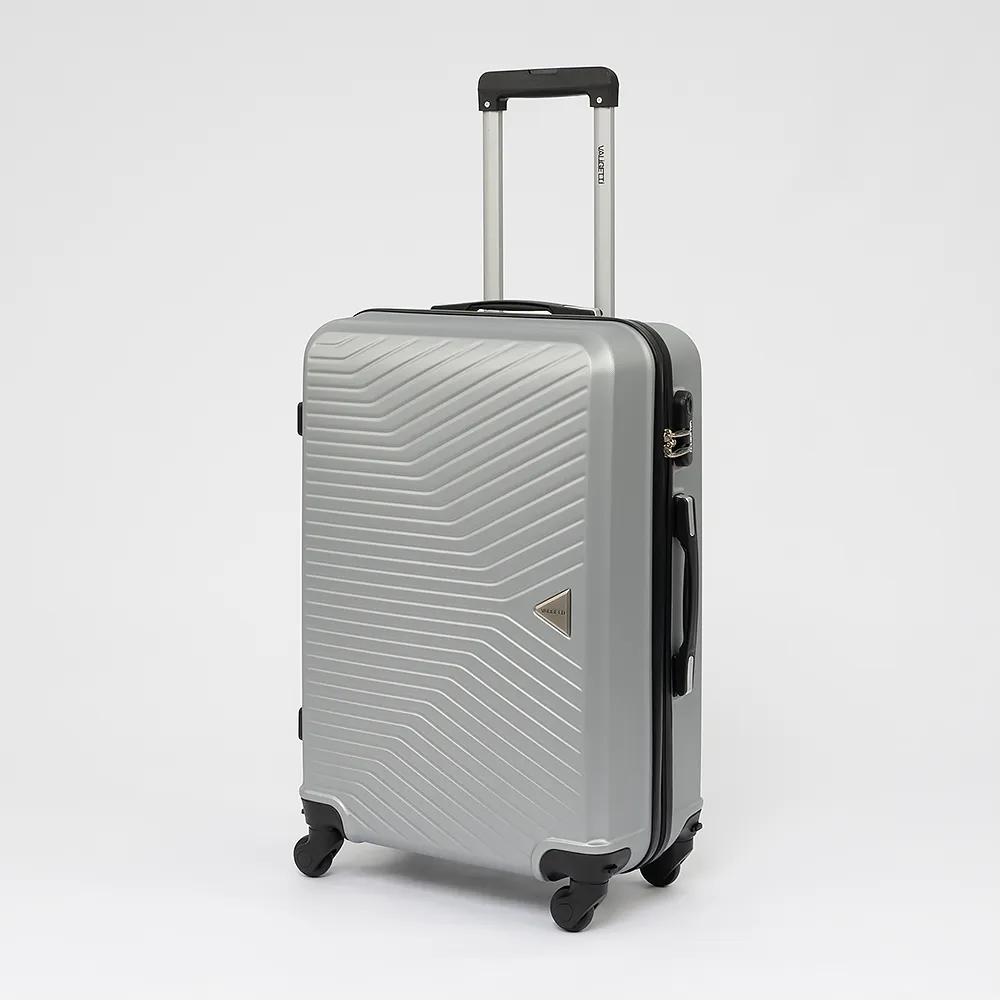Чемодан-спиннер от торговой марки Valigetti из ударопрочного ABS-пластика с рельефной поверхностью желтого цвета. Модель на четырех съемных пластиковых колесах, с выдвижной ручкой, ручками-переносками сверху и сбоку, ножками-опорами сбоку. Имеется кодовый замок. Отделение на молнии с двумя встречными бегунками с ушками для навесного замка, не входящего в комплект. Внутри: фирменная подкладка. В одном отделении - разделитель на молнии и карман-сетка на молнии, в другом - перекрестные ремни для фиксации багажа.