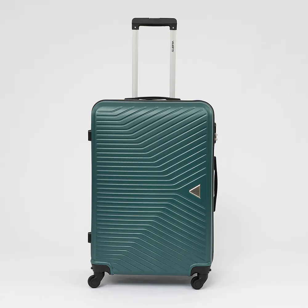 Чемодан-спиннер от торговой марки Valigetti из ударопрочного ABS-пластика с рельефной поверхностью желтого цвета. Модель на четырех съемных пластиковых колесах, с выдвижной ручкой, ручками-переносками сверху и сбоку, ножками-опорами сбоку. Имеется кодовый замок. Отделение на молнии с двумя встречными бегунками с ушками для навесного замка, не входящего в комплект. Внутри: фирменная подкладка. В одном отделении - разделитель на молнии и карман-сетка на молнии, в другом - перекрестные ремни для фиксации багажа.