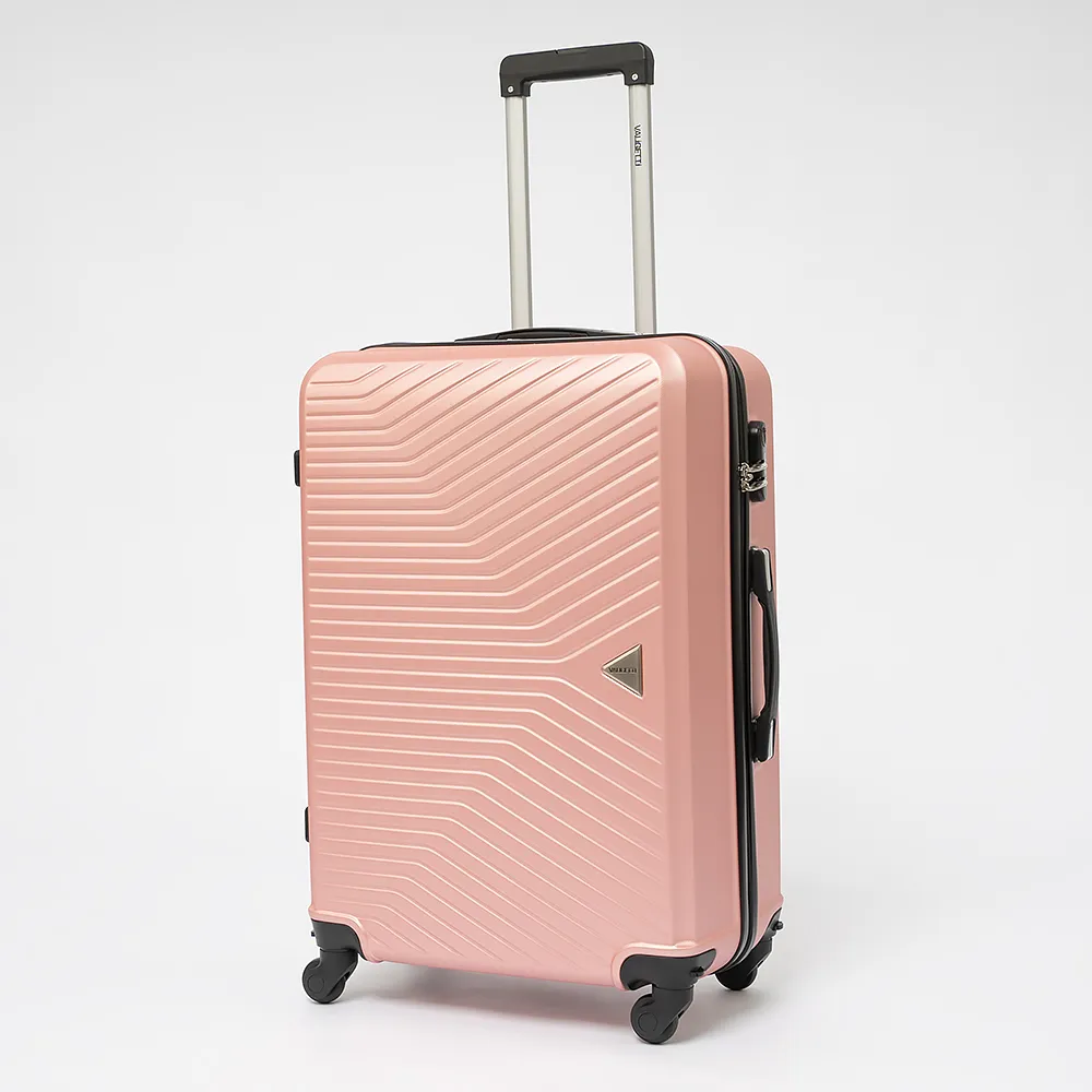 Чемодан-спиннер от торговой марки Valigetti из ударопрочного ABS-пластика с рельефной поверхностью розового цвета. Модель на четырех съемных пластиковых колесах, с выдвижной ручкой и ручкой-переноской сверху. Имеется кодовый замок. Отделение на молнии с двумя встречными бегунками. Внутри: фирменная подкладка. В одном отделении - разделитель на молнии и карман-сетка на молнии, в другом - перекрестные ремни для фиксации багажа.
