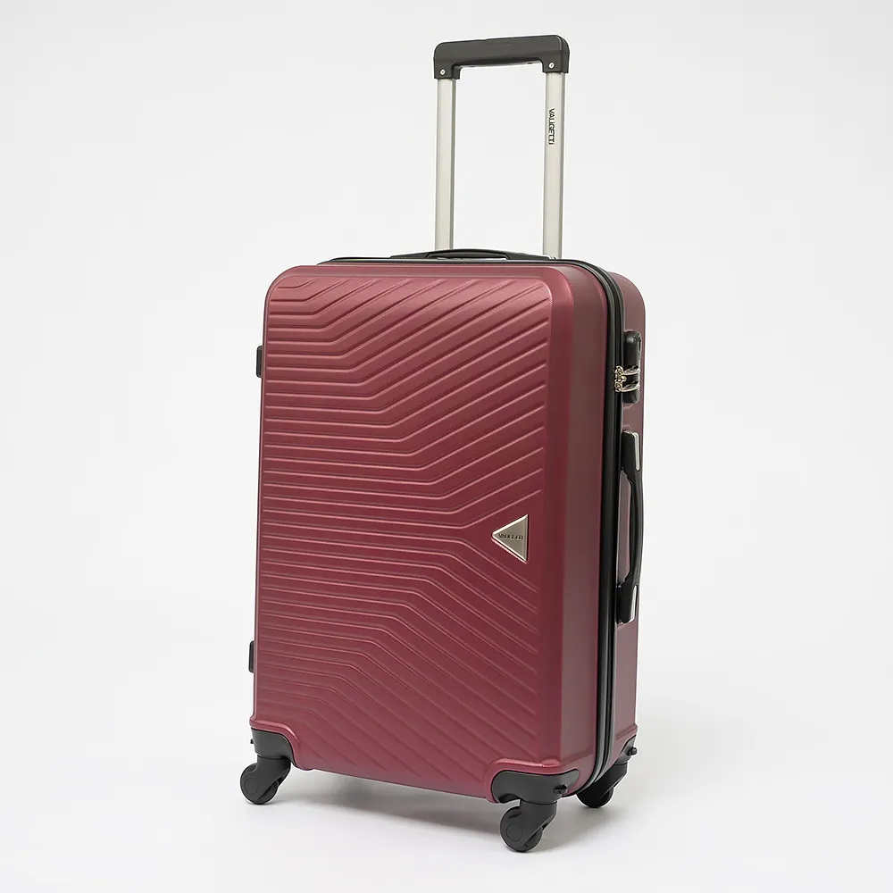 Чемодан-спиннер от торговой марки Valigetti из ударопрочного ABS-пластика с рельефной поверхностью розового цвета. Модель на четырех съемных пластиковых колесах, с выдвижной ручкой и ручкой-переноской сверху. Имеется кодовый замок. Отделение на молнии с двумя встречными бегунками. Внутри: фирменная подкладка. В одном отделении - разделитель на молнии и карман-сетка на молнии, в другом - перекрестные ремни для фиксации багажа.