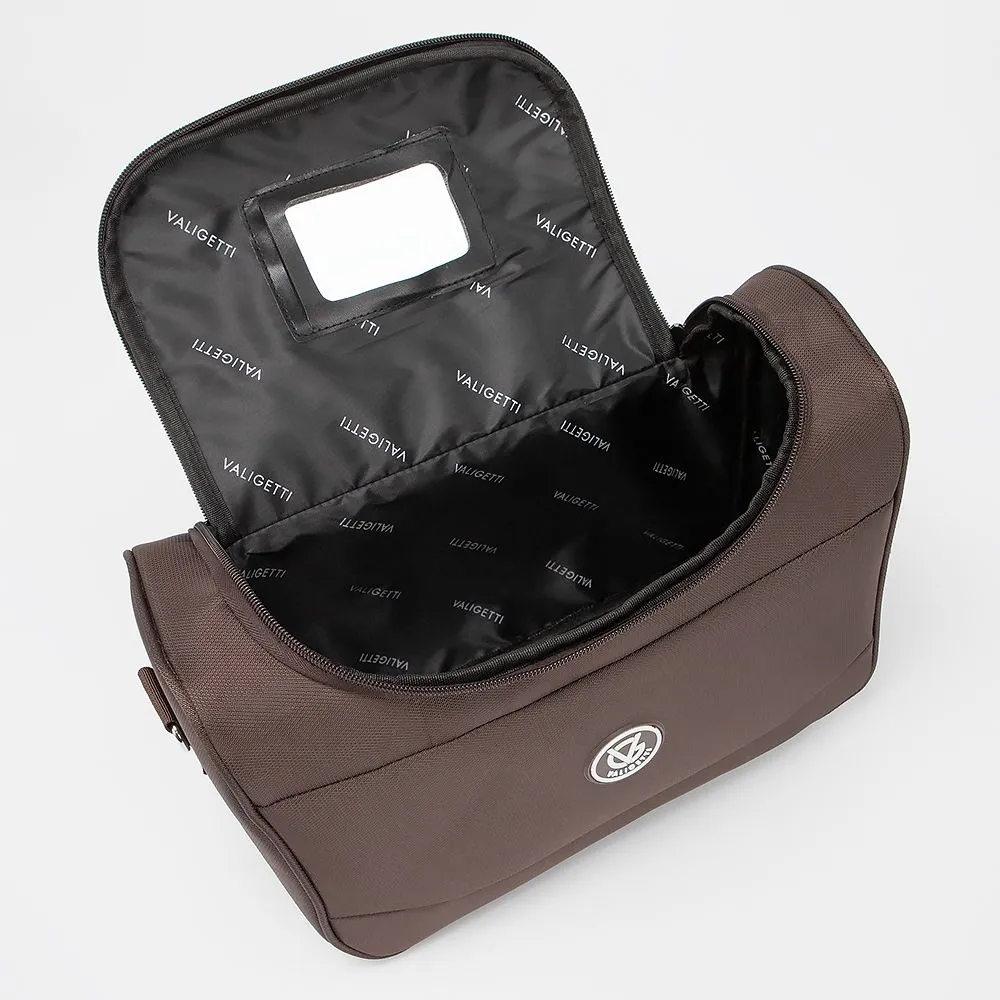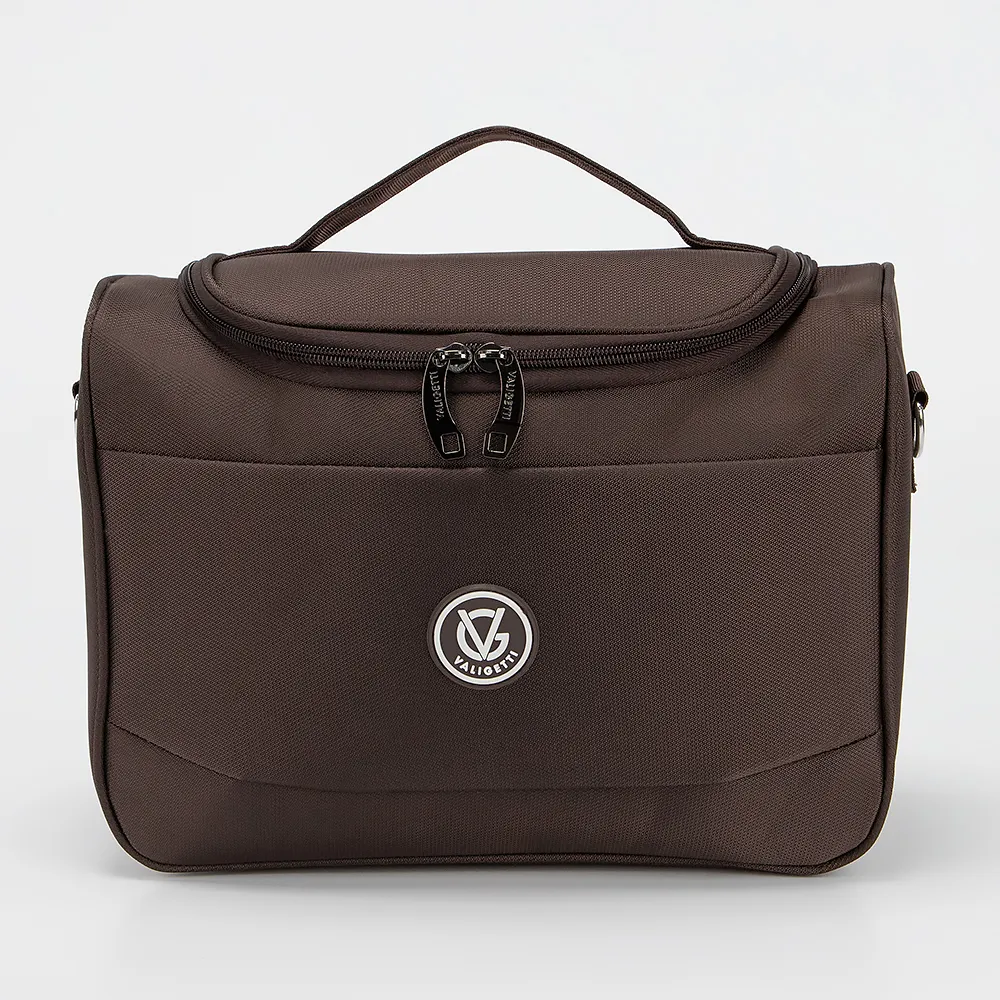Чемодан от торговой марки Valiggetti из прочного практичного текстильного материала коричневого цвета. Модель на двух пластиковых колесах, с выдвижной ручкой, ручкой-переноской сверху, пластиковыми ножками-опорами снизу, держателем на дне. Закрывается молнией, имеется кодовый замок. Внутри: фирменная подкладка, на крышке - два кармана на молнии, в том числе карман-сетка, в глубоком отделении - ремни для фиксации багажа. На задней стороне - адресное окошко. На лицевой стороне - карман на молнии. Чемодан подходит под размер ручной клади большинства авиакомпаний.