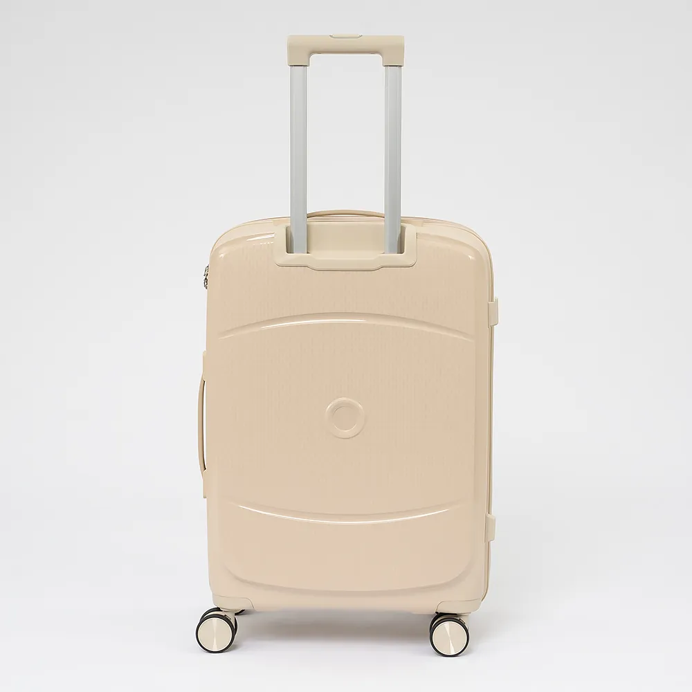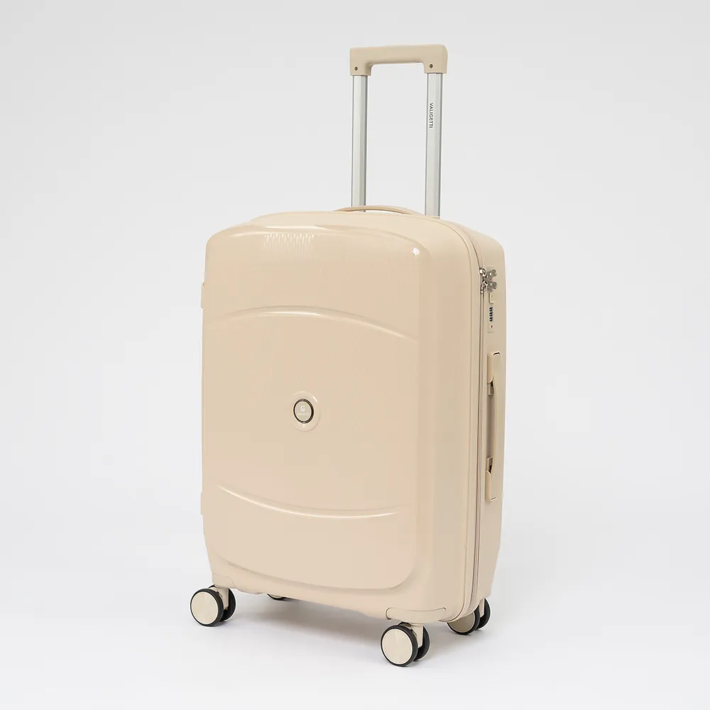 Чемодан-спиннер от торговой марки Valigetti выполнен из ударопрочного полипропилена с антивандальной рельефной поверхностью серо-зеленого цвета. Модель на четырех сдвоенных пластиковых колесах, с выдвижной металлической ручкой, ручкой-переноской сверху и сбоку, пластиковыми ножками для защиты от износа. Закрывается молнией №8 антивор с двумя встречными бегунками, имеется кодовый замок утопленный в корпус. Внутри: фирменная подкладка, в одной части - перекрестные ремни для фиксации багажа, в другой - клапан-разделитель на молнии, карман-сетка на молнии. Сбоку имеются крючки для подвешивания сумки или пакета.