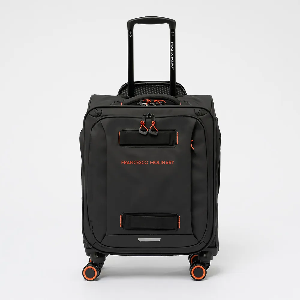 Чемодан-спиннер от торговой марки Francesco Molinary из прочного водоотталкивающего полиэстера цвета хаки. Модель на четырех сдвоенных пластиковых колесах, с выдвижной ручкой с кнопкой ( в сложенном виде закрывается клапаном на молнии) и металлическими трубками, плотными набивными ручками сверху и сбоку. Низ чемодана изготовлен из плотного прорезиненного материала, а углы и задняя стенка защищены накладками для дополнительной прочности. Имеется 2 глубоких боковых кармана, большой откидной карман на лицевой стороне и скрытый карман на молнии. Закрывается двойной антивандальной непромокаемой молнией №8 со встречными бегунками, имеется кодовый замок. Внутри: фирменная подкладка, в глубоком отделении - ремни для фиксации багажа, на крышке - карман-сетка на молнии. Имеется молния для увеличения объема.