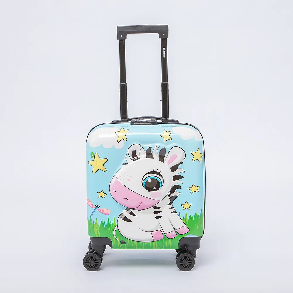 Чемодан-спиннер от торговой марки Ecotope из ударопрочного ABS пластика и поликарбоната в мятном цвете с изображением зебры. Модель на четырех колесах, с выдвижной ручкой и ручкой-переноской сверху, оснащена кодовым замком. Закрывается молнией. Внутри: фирменная подкладка, в одной из частей - клапан-разделитель на молнии, в другой - перекрестные ремни для фиксации багажа.