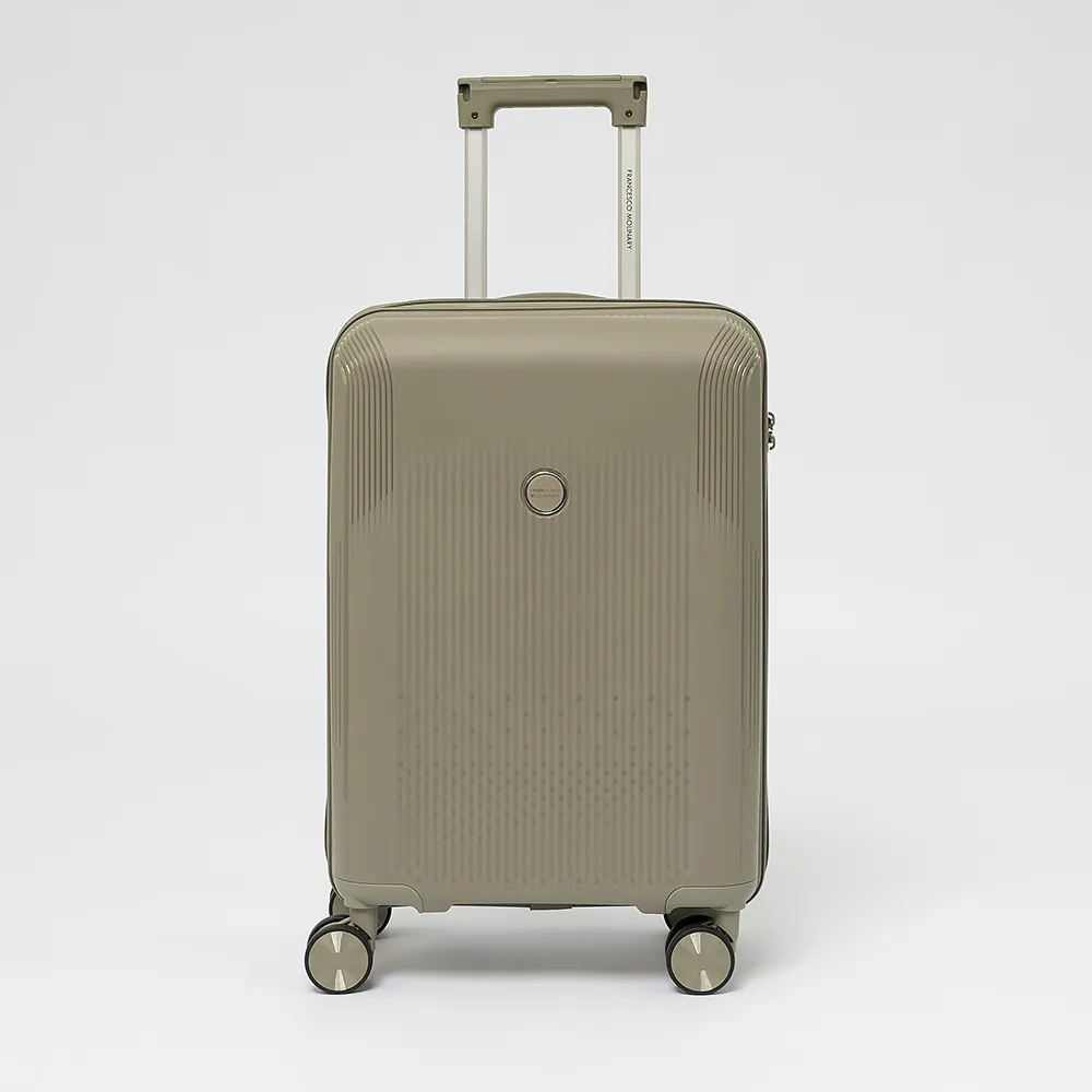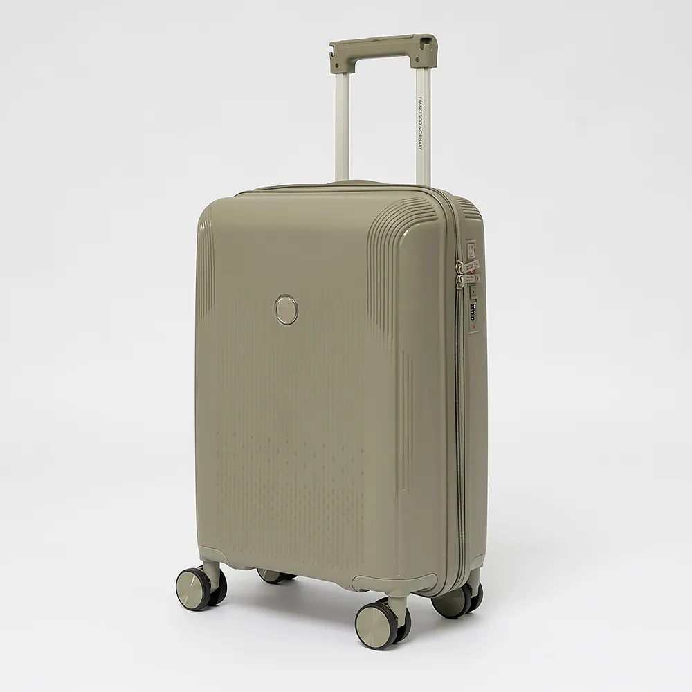 Чемодан-спиннер от торговой марки Francesco Molinary из ударопрочного термостойкого полипропилена с антивандальной узорной поверхностью в сером цвете. Модель на четырех сдвоенных пластиковых колесах, с выдвижной ручкой с железными трубками, ручкой-переноской сверху и сбоку. Закрывается двойной антивандальной молнией, установлен кодовый замок TSA, встроенный в корпус. Внутри: фирменная подкладка, в одной части - перекрестные ремни для фиксации багажа, в другой - клапан-разделитель на молнии, карман-сетка на молнии и водонепроницаемый карман. Cбоку имеются крючки для подвешивания сумки или пакета. Оснащен молнией для увеличения объема.