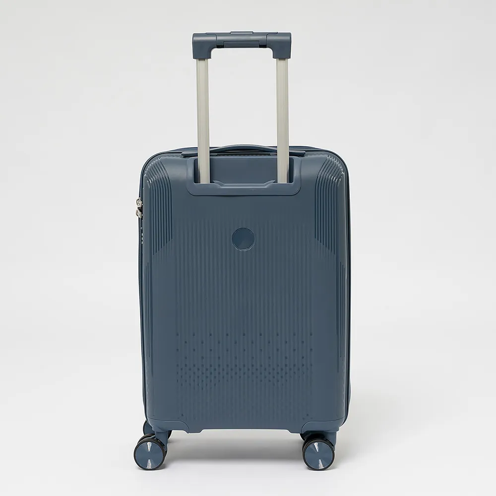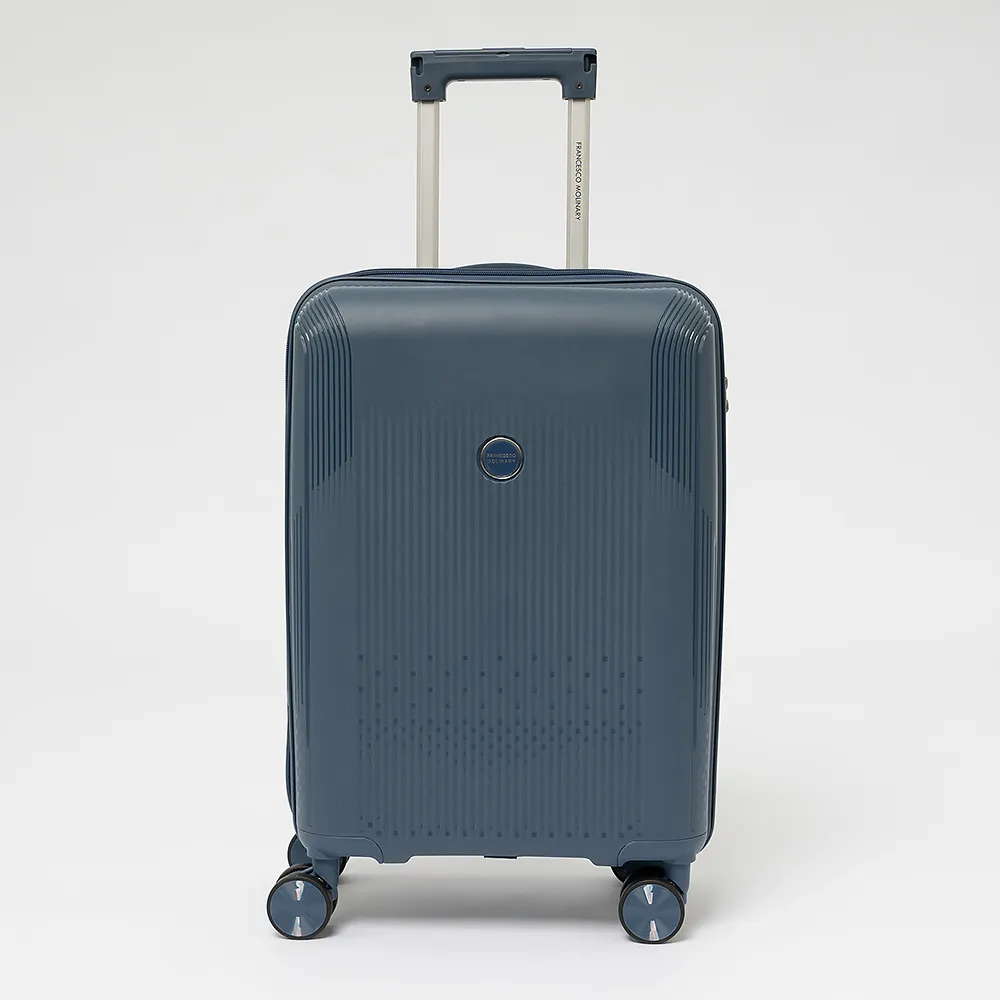 Чемодан-спиннер от торговой марки Francesco Molinary из ударопрочного термостойкого полипропилена с антивандальной узорной поверхностью в сером цвете. Модель на четырех сдвоенных пластиковых колесах, с выдвижной ручкой с железными трубками, ручкой-переноской сверху и сбоку. Закрывается двойной антивандальной молнией, установлен кодовый замок TSA, встроенный в корпус. Внутри: фирменная подкладка, в одной части - перекрестные ремни для фиксации багажа, в другой - клапан-разделитель на молнии, карман-сетка на молнии и водонепроницаемый карман. Cбоку имеются крючки для подвешивания сумки или пакета. Оснащен молнией для увеличения объема.
