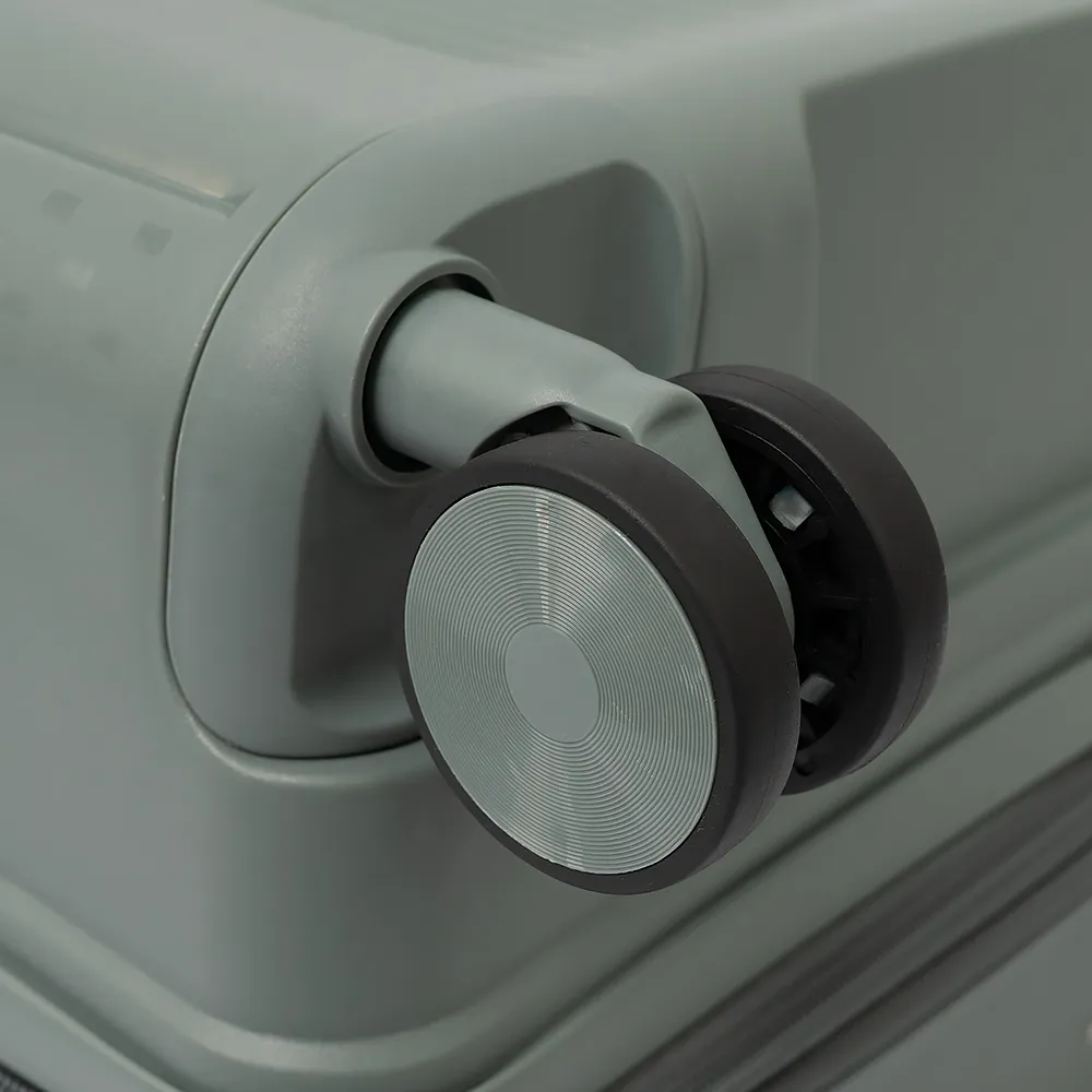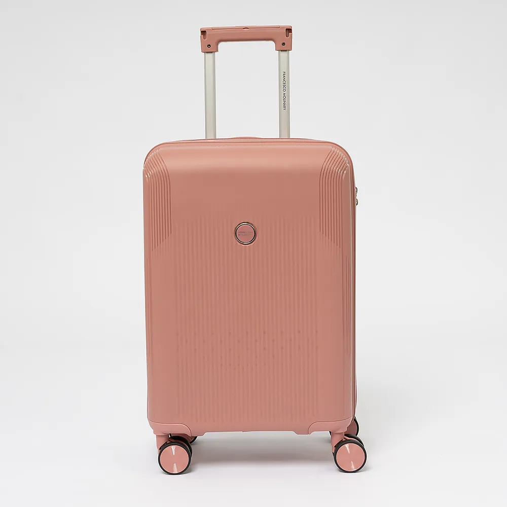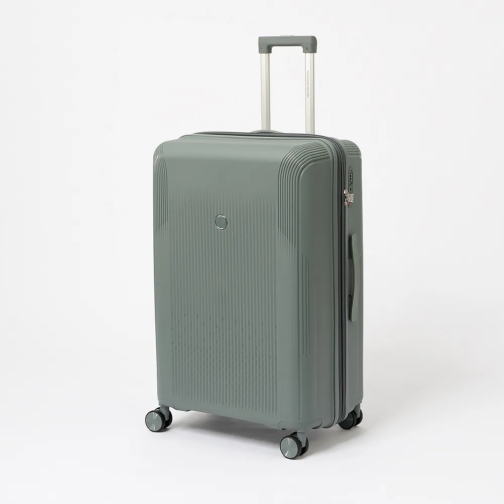 Чемодан-спиннер от торговой марки Francesco Molinary из ударопрочного термостойкого полипропилена с антивандальной узорной поверхностью в сером цвете. Модель на четырех сдвоенных пластиковых колесах, с выдвижной ручкой с железными трубками, ручкой-переноской сверху и сбоку. Закрывается двойной антивандальной молнией, установлен кодовый замок TSA, встроенный в корпус. Внутри: фирменная подкладка, в одной части - перекрестные ремни для фиксации багажа, в другой - клапан-разделитель на молнии, карман-сетка на молнии и водонепроницаемый карман. Cбоку имеются крючки для подвешивания сумки или пакета. Оснащен молнией для увеличения объема.