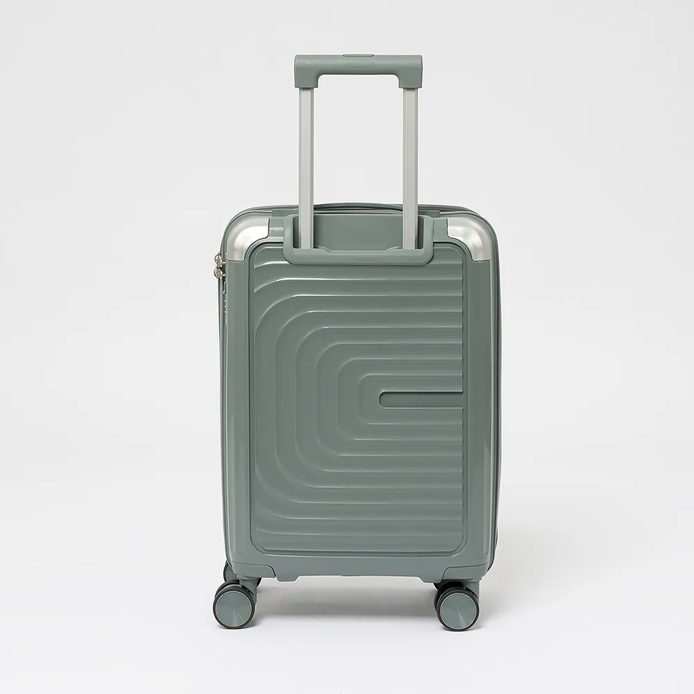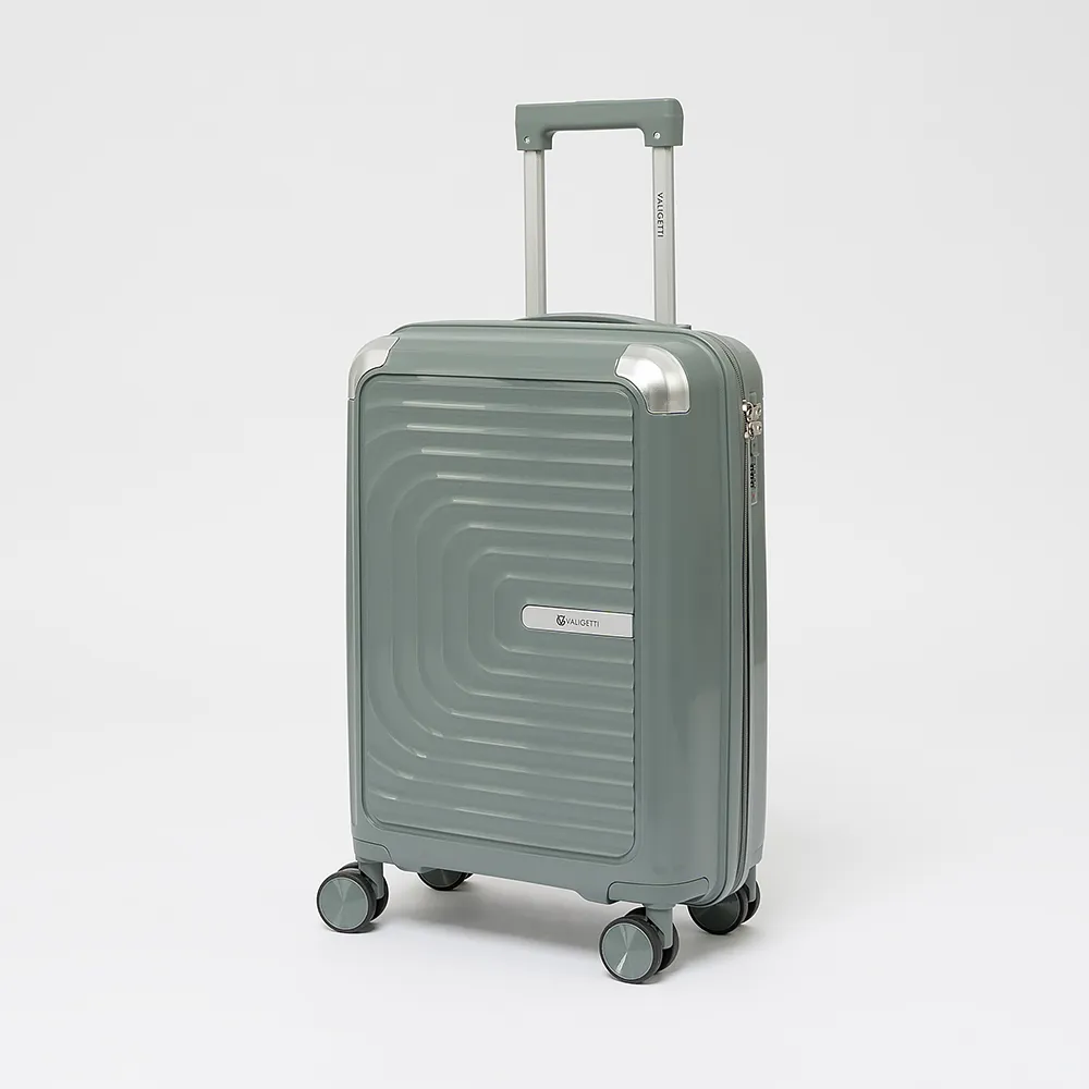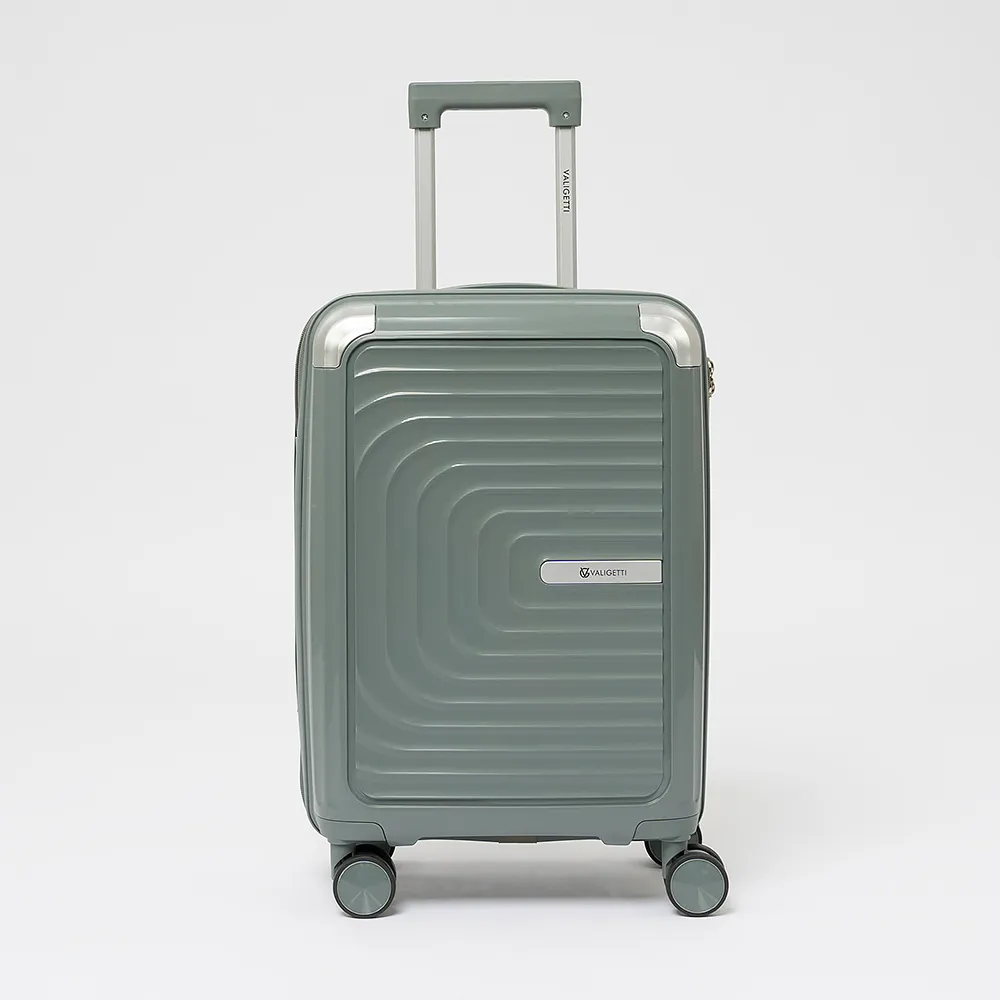 Чемодан-спиннер от торговой марки Valigetti из ударопрочного термостойкого полипропилена серебристого цвета. Модель на четырех пластиковых колесах, с выдвижной ручкой и ручкой-переноской сверху, ножками для защиты от износа с крючками для подвешивания. Имеется утопленный кодовый замок. Отделение на молнии с двумя встречными бегунками. Внутри: фирменная подкладка. В одном отделении - разделитель на молнии и карман-сетка на молнии, в другом - перекрестные ремни для фиксации багажа.