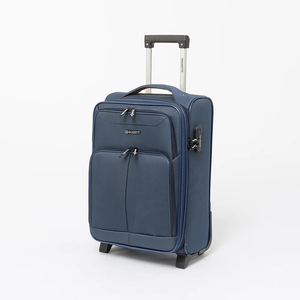 Чемодан от торговой марки Valiggetti из прочного практичного текстильного материала серого цвета. Модель на двух пластиковых колесах, с выдвижной ручкой, ручкой-переноской сверху и сбоку, пластиковыми ножками-опорами снизу и сбоку, держателем на дне. Закрывается молнией, имеется кодовый замок. Внутри: фирменная подкладка, на крышке - карман-сетка на молнии, в глубоком отделении - ремни для фиксации багажа. На лицевой стороне - два кармана на молнии.