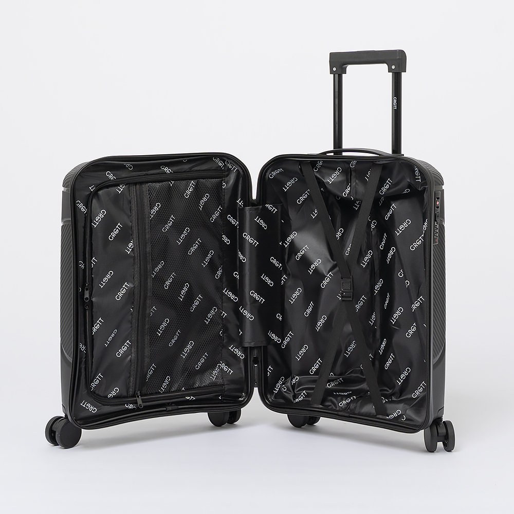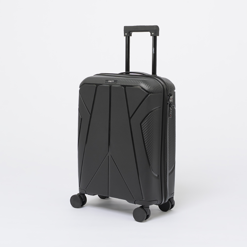 Чемодан-спиннер от торговой марки Grott из ударопрочного термостойкого полипропилена бирюзового цвета с оригинальной рельефной поверхностью. Модель на четырех сдвоенных пластиковых колесах, с выдвижной ручкой, ручками-переносками сверху и сбоку, пластиковыми ножками-опорами сбоку. Закрывается молнией, имеется кодовый замок, утопленный в корпус. Внутри: фирменная подкладка, в одной части - клапан-разделитель на молнии, карман-сетка на молнии, в другой - перекрестные ремни для фиксации багажа. На боковых ножках предусмотрены крючки для подвешивания пакетов.