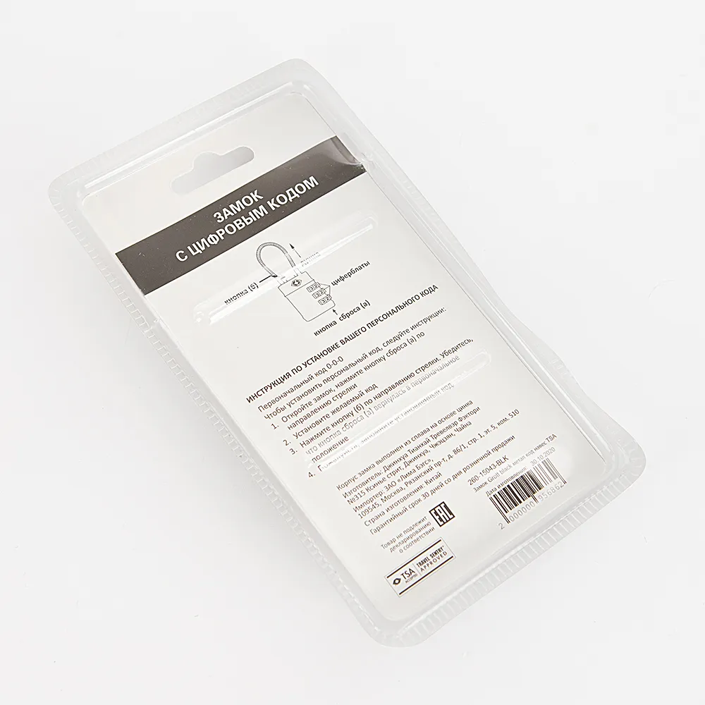 Навесной кодовый замок от торговой марки Grott. Модель из высококачественной стали, с гибким тросом, с цифровым кодом TSA.
