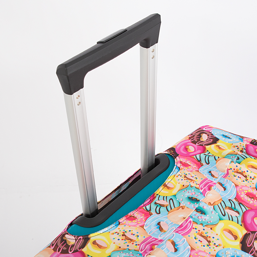 Практичный износостойкий чехол для чемодана от торговой марки Grott выполнен из прочного текстиля. Дорожный аксессуар поможет предохранить багаж от загрязнений, вскрытий и мелких повреждений. Чехол эластичный, подходит для чемоданов с диагональю от 22 до 26 дюймов. Застегивается снизу на липучку и дополнен эластичным ремешком на застежке фастекс; имеет отверстия слева и справа для переносных ручек и сверху для выдвижной ручки чемодана. Оригинальный ромбовидный принт поможет опознать чемодан на багажной ленте.