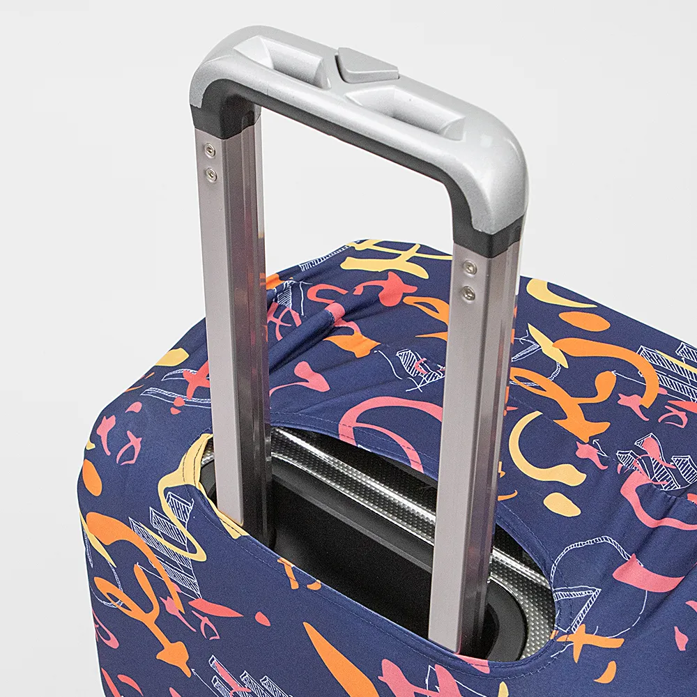 Чехол для чемодана от торговой марки Grott выполнен из прочного эластичного материала. Модель размером L подходит для чемоданов с диагональю от 26 до 28 дюймов. Снизу фиксируется липучкой и эластичным ремнем с застежкой фастекс, имеет отверстия для переносных ручек и выдвижной ручки чемодана. Дорожный аксессуар защитит багаж от загрязнений и повреждений, а оригинальный принт поможет опознать чемодан на багажной ленте.