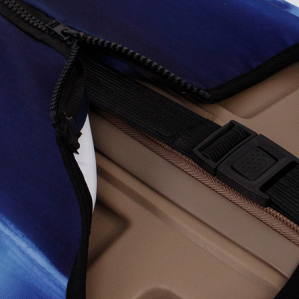 Чехол для чемодана от торговой марки Grott выполнен из прочного эластичного материала. Модель размером M подходит для чемоданов с диагональю от 22 до 26 дюймов. Застегивается снизу на молнию, фиксируется ремешком с застежкой фастекс; имеет отверстия для переносных ручек и выдвижной ручки чемодана. Дорожный аксессуар защитит багаж от загрязнений и повреждений, а оригинальный принт с изображением оленя в заснеженном лесу поможет опознать чемодан на багажной ленте.