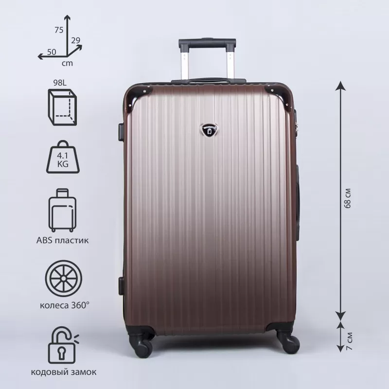 - Благодаря прочной телескопической ручке, чемодан легко управляется одной рукой.