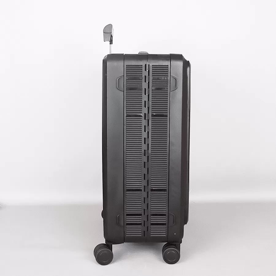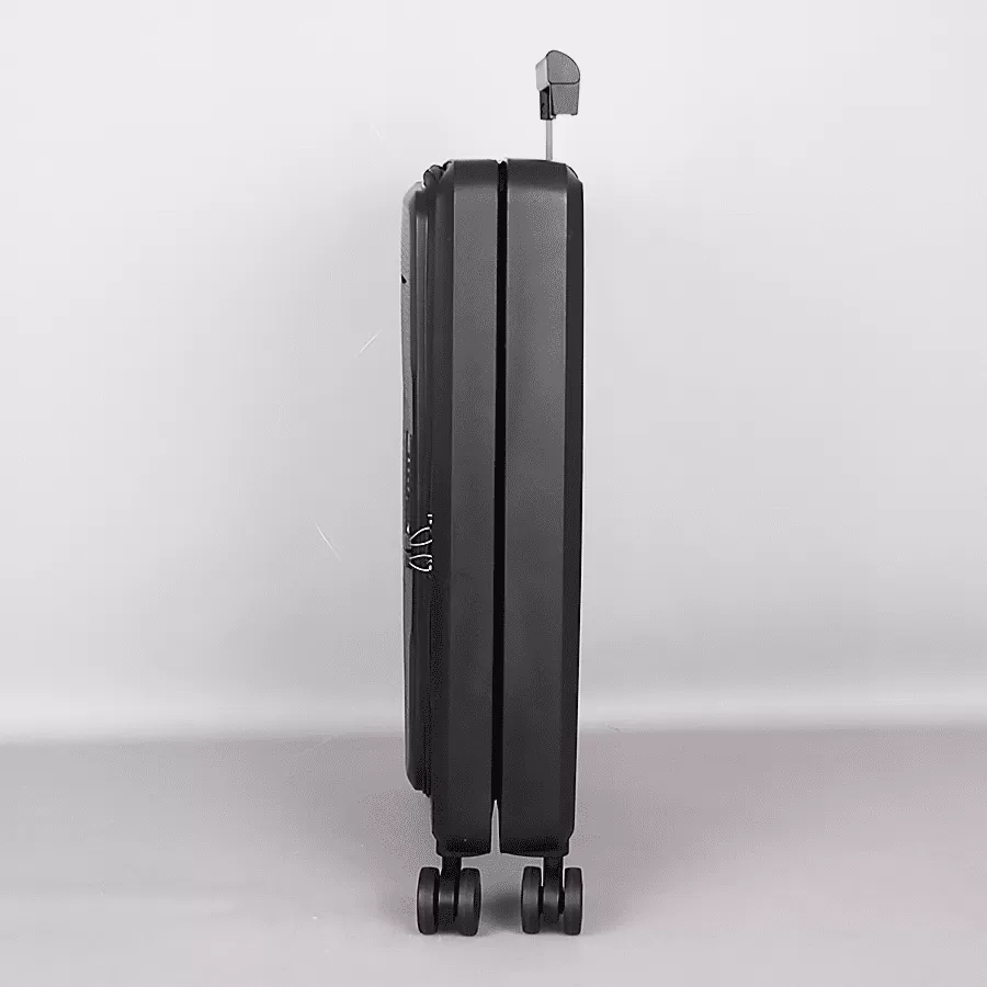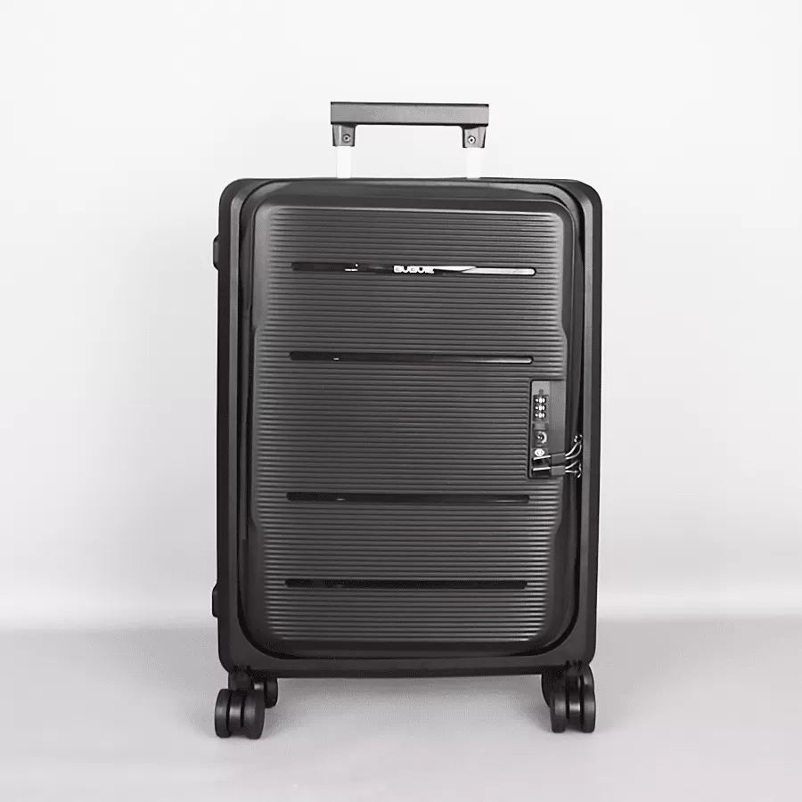 Чемодан-трансформер Bubule — это ударопрочная и термостойкая модель из полипропилена с антивандальным покрытием. Он представлен в чёрном цвете и имеет оригинальный дизайн, который делает его удобным не только для хранения, но и для путешествий, когда можно использовать компактный багаж. Чемодан оснащён четырьмя сдвоенными пластиковыми колёсами, выдвижной алюминиевой ручкой и тремя ручками для переноски. Он закрывается на молнию и имеет встроенный кодовый замок TSA на корпусе. На задней стороне есть адресное окошко. Внутри чемодана есть текстильная подкладка, а глубокое отделение закрывается клапаном-сеткой. На крышке расположен карман-сетка. На нижней и верхней стенках есть фиксаторы, которые позволяют сложить боковые части чемодана. В сложенном виде он фиксируется ремнём с застёжкой фастекс. Размеры чемодана: длина — 38 см, ширина — 24 см, ширина в сложенном виде — 15 см, высота — 51 см (с учётом колёс — 56 см).