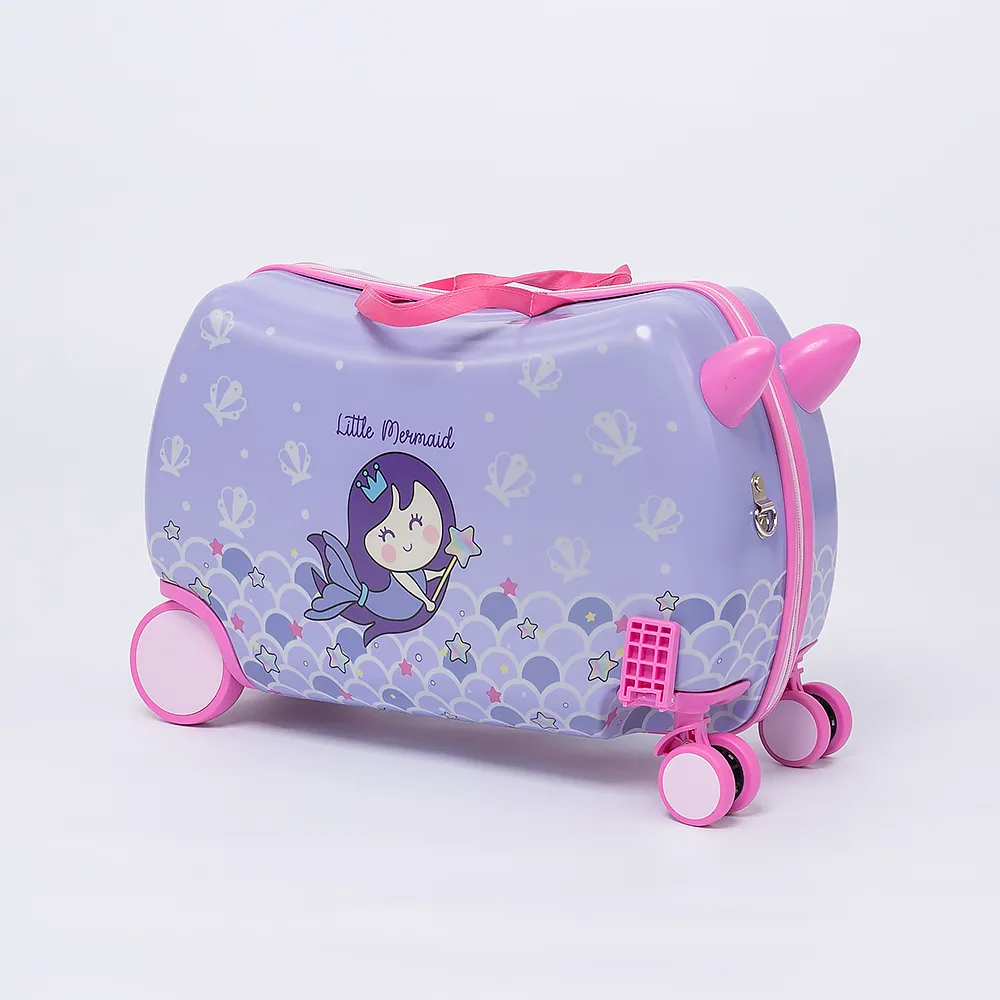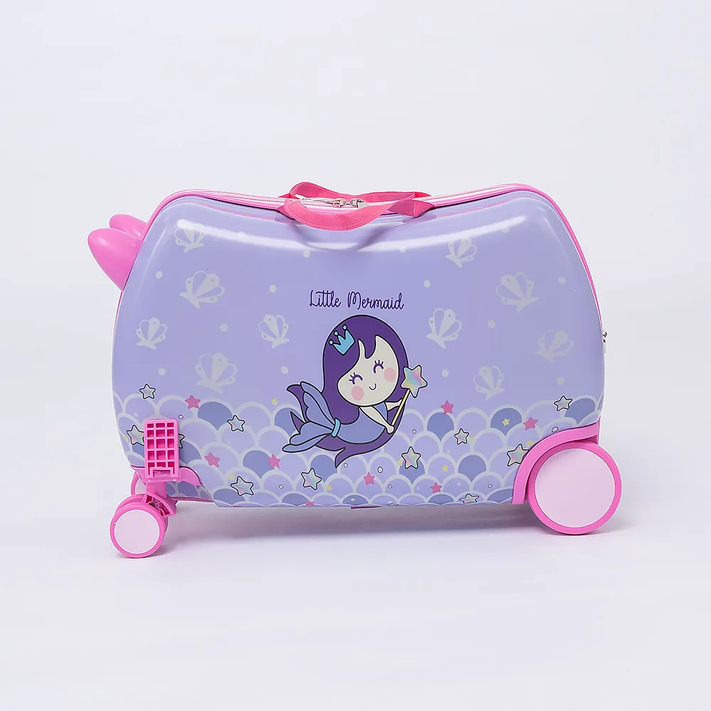 Чемодан-каталка из ударопрочного ABS пластика и поликарбоната в синем цвете с элементами красного цвета с изображением машинок и мишек. Модель на четырех колесах, два из которых поворотные, два - нет. С двумя ручками переносками и съемным регулируемым плечевым ремнем. Закрывается молнией. Внутри: фирменная подкладка, в одной из частей - клапан-разделитель на молнии, в другой - перекрестные ремни для фиксации багажа. Имеется дополнительный кармашек на молнии.