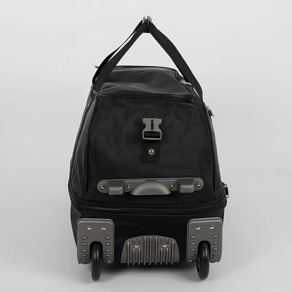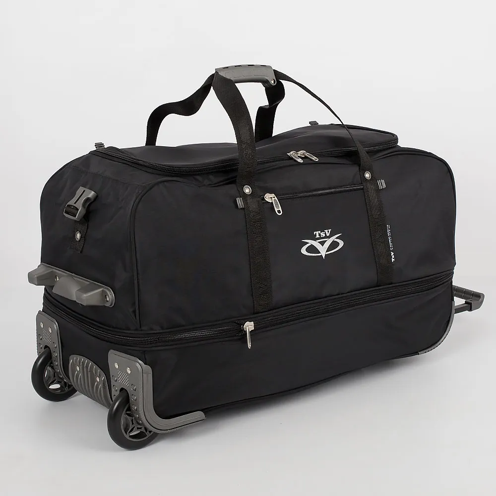 Практичная раздвижная сумка-тележка от бренда TSV выполнена из плотного текстильного материала серого цвета. Внутри одно основное отделение под молнией, снаружи прорезной карман на молнии. Модель на двух удобных ручках для переноса снабжена колесами и выдвижной ручкой. Дно модели оснащено пластиковыми «ножками» для защиты от износа и лучшей устойчивости.