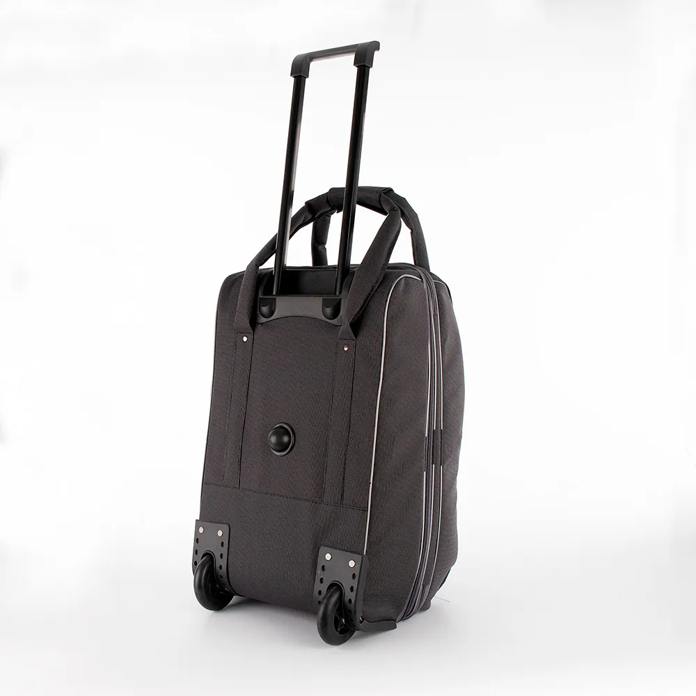 Набор от торговой марки Mr.Bag, состоящий из сумки-тележки и сумки, выполнен из практичного текстильного материала серого цвета с салатовыми вставками. Сумка-тележка на двух колесах, для надежности утопленных в корпус, с держателем-опорой, с выдвижной ручкой, двумя ручками с фиксатором на липучке, большой круглой ножкой на дне. Отделение на молнии. Внутри: текстильная подкладка, в одной из частей – фиксирующие ремни. Имеется раздвижка на молнии для увеличения объема. На лицевой стороне – два кармана на молнии. На выдвижную ручку с помощью лямки крепится компактная сумка. Модель с двумя ручками и несъемным регулируемым плечевым ремнем. Отделение на молнии. Внутри: карман на молнии. На лицевой стороне – карман на молнии.