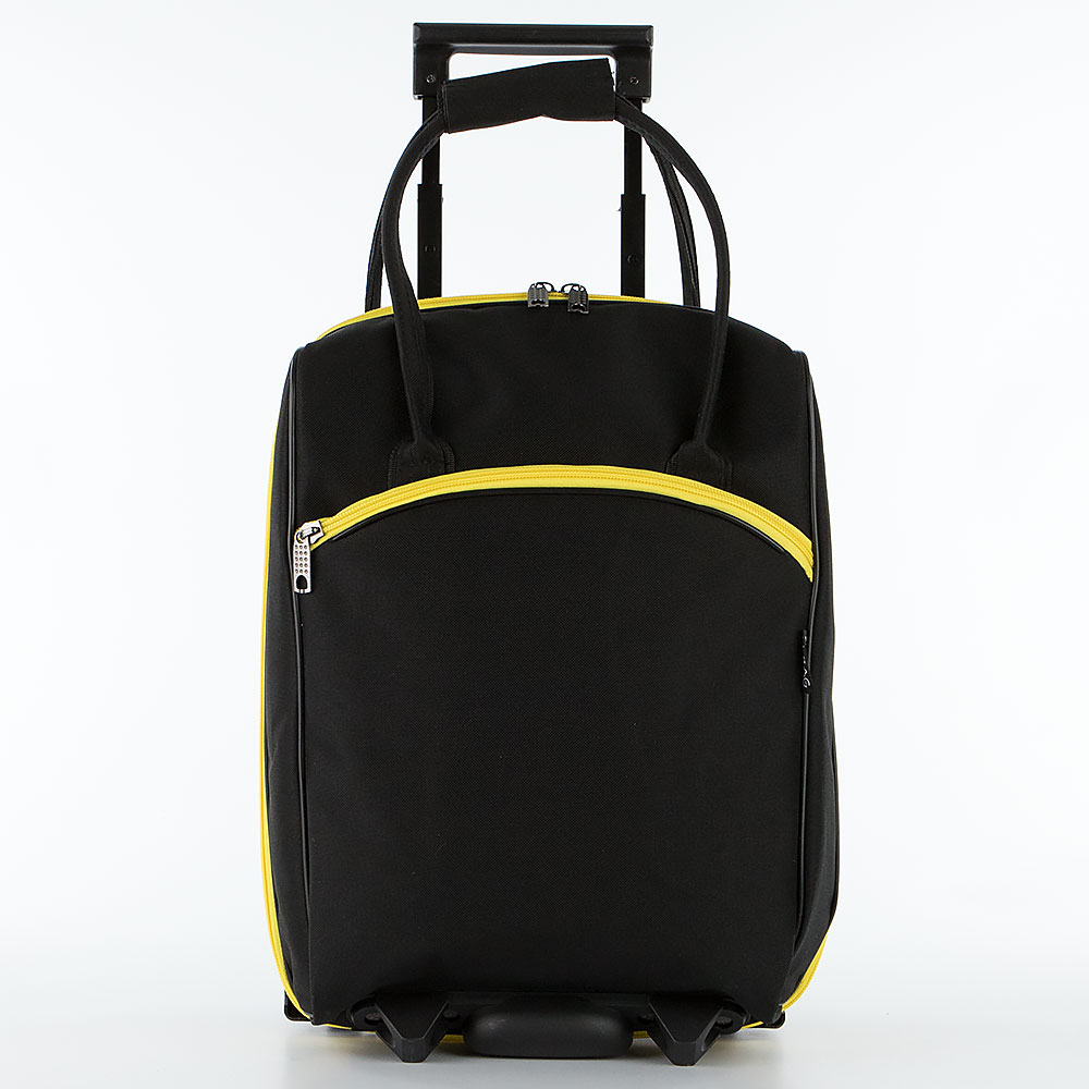 Сумка-тележка от торговой марки Mr.Bag из практичного текстильного материала коричневого цвета с принтом гусиная лапка. Модель на двух колесах, утопленных в корпус, с выдвижной ручкой, двумя ручками с фиксатором на липучке, пластиковыми ножками и держателем на дне. Отделение на молнии широко раскрывается на 180 градусов. Внутри: текстильная подкладка, перекрестные ремни для фиксации багажа в обеих частях. Имеется раздвижка для увеличения объема. На лицевой стороне - карман на молнии.